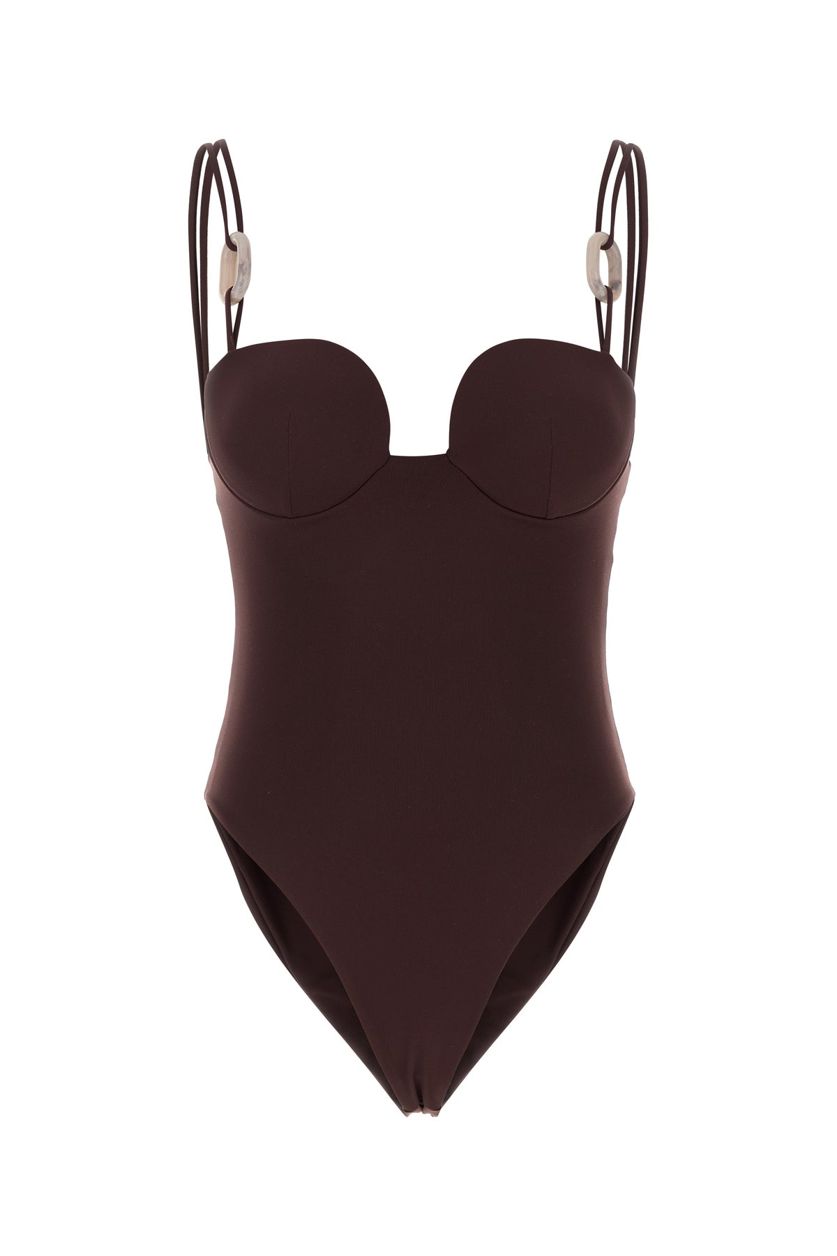 Costume intero realizzato in nylon sketch arricchito daparticolari dettagli sulle spalline.