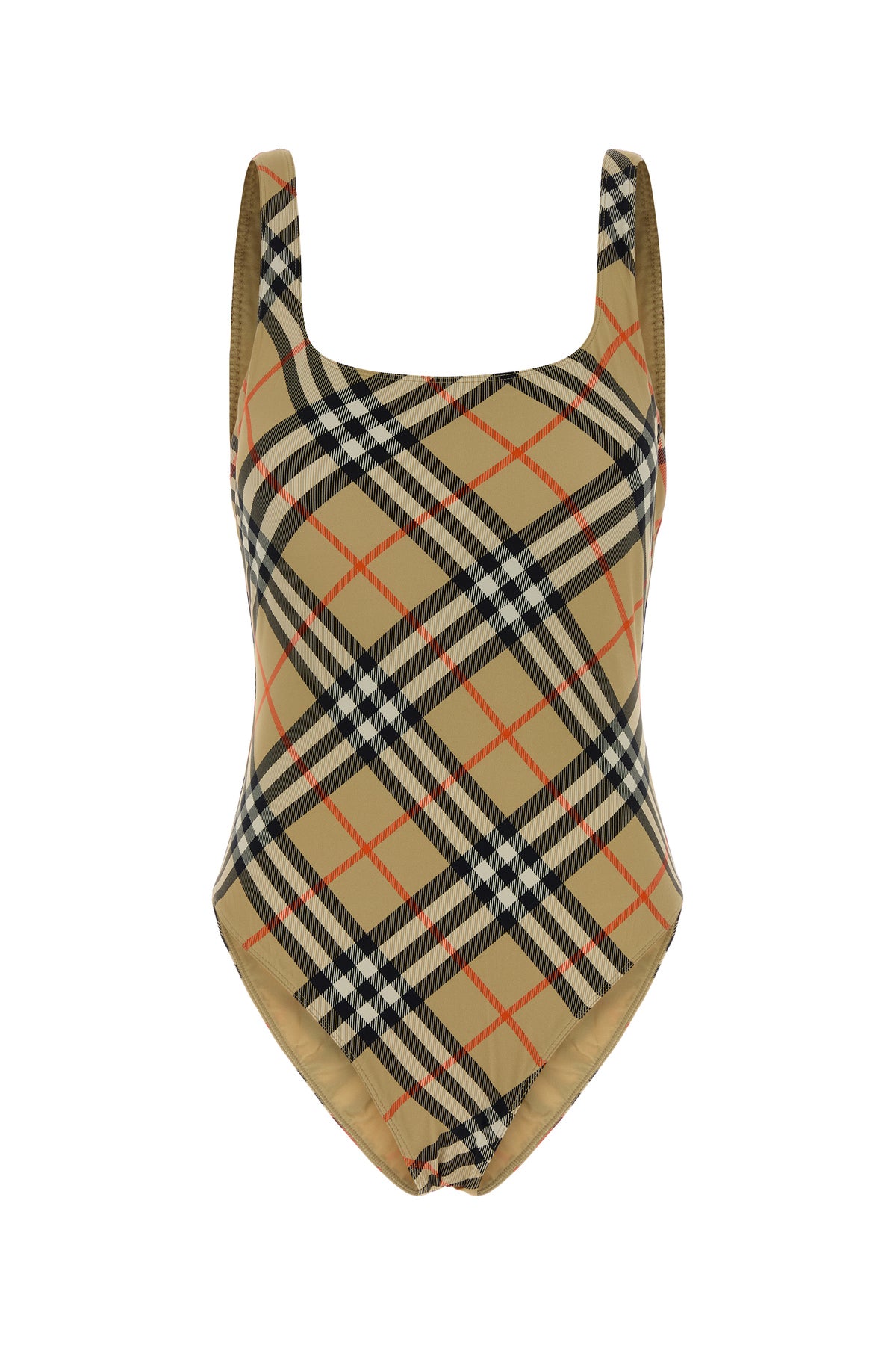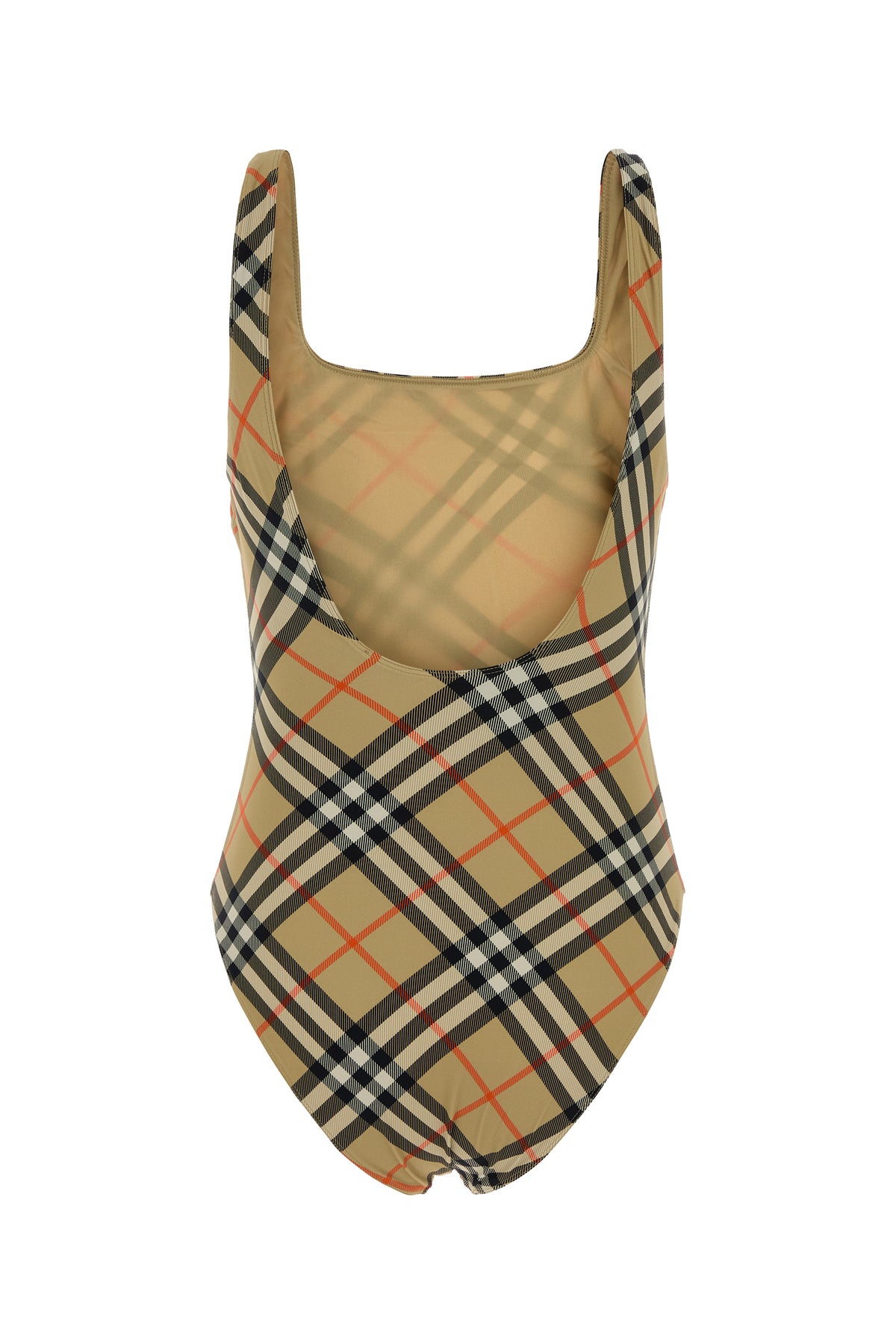 Costume intero realizzato in nylon stretch caratterizzato da stampa Burberry Check su tutta la superficie.