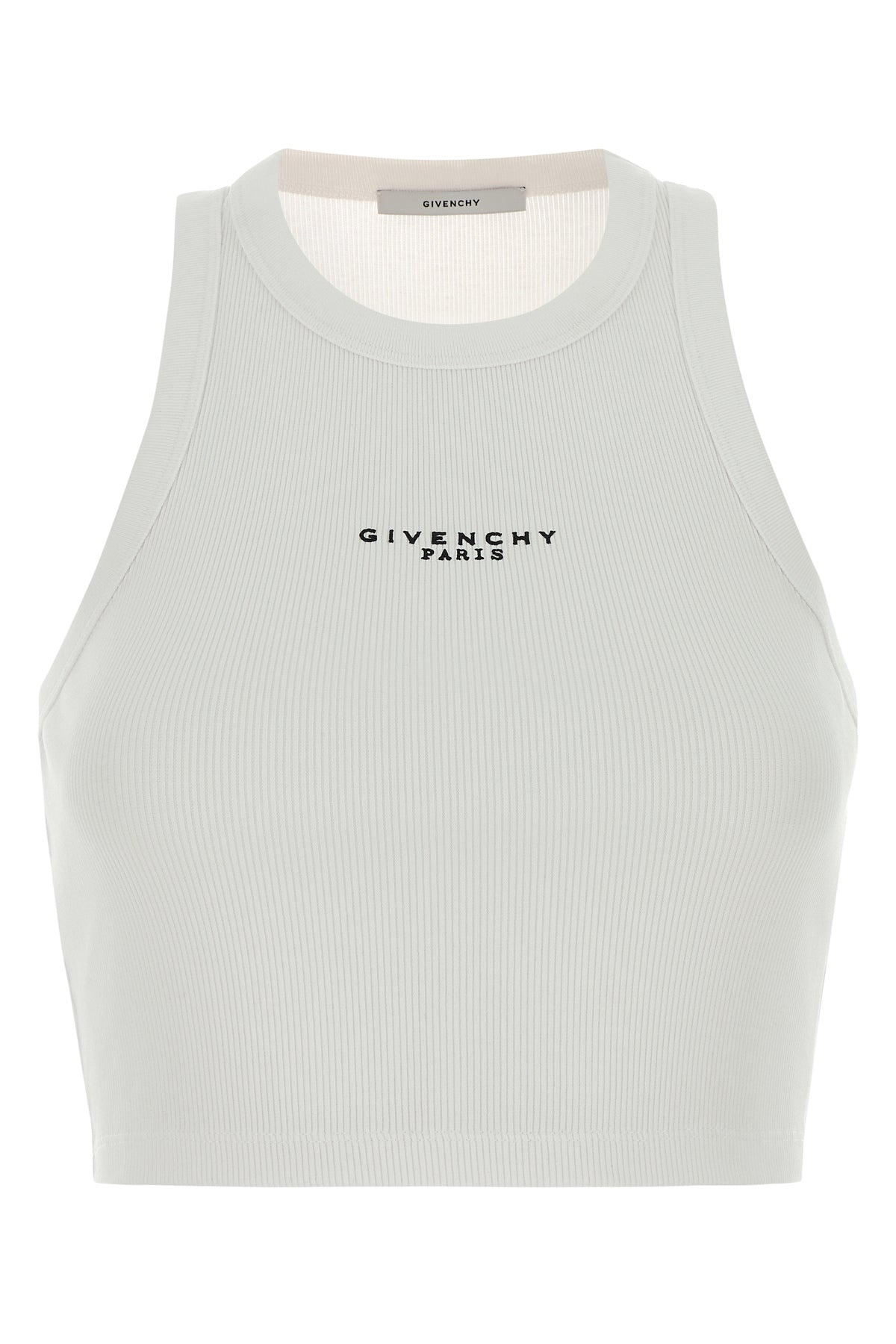 Crop-top realizzato in cotone stretch a costine caratterizzato da stampa Givenchy Paris sulla parte frontale.