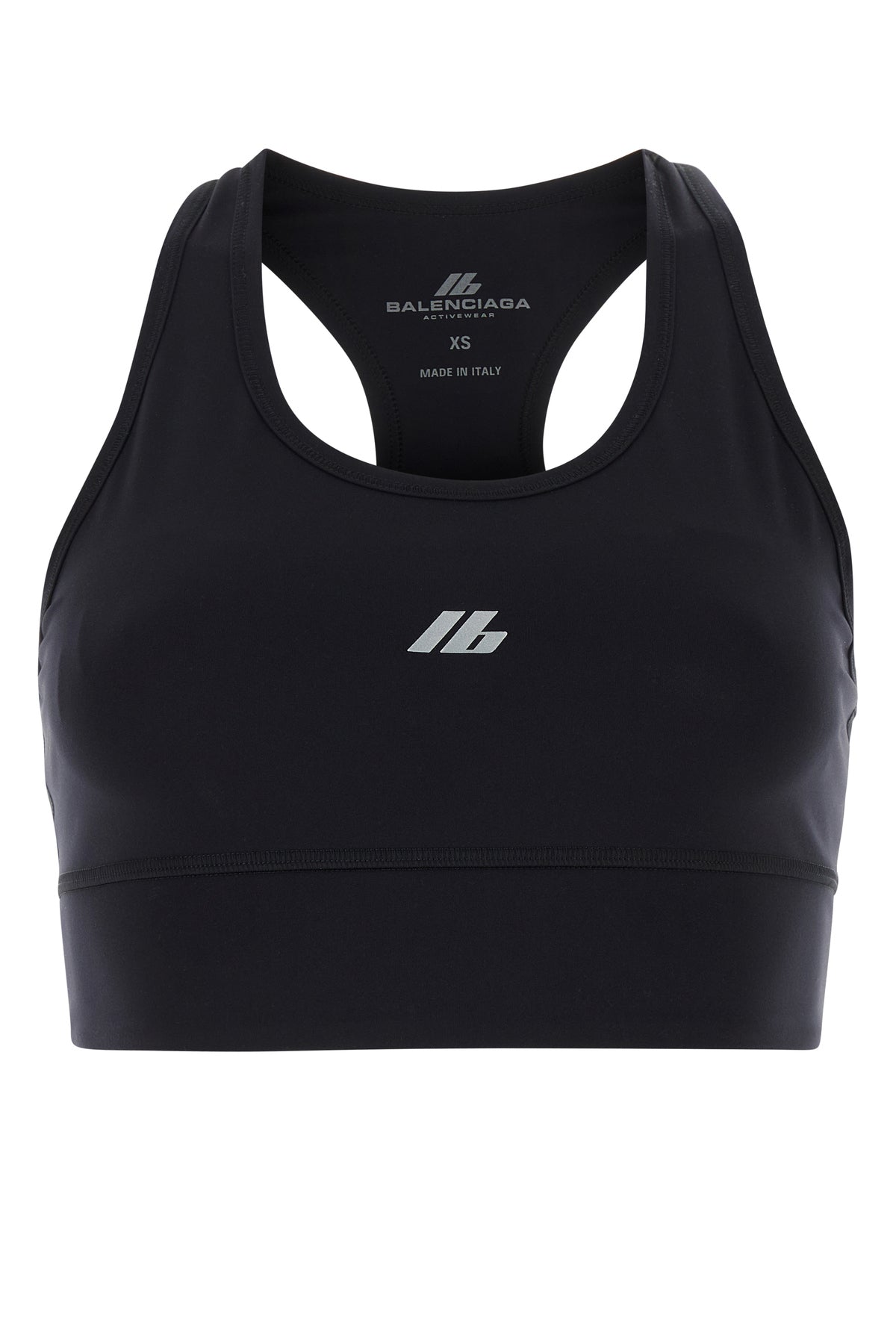 Crop-top realizzato in nylon stretch caratterizzato da stampa Activewear laminata sul petto.