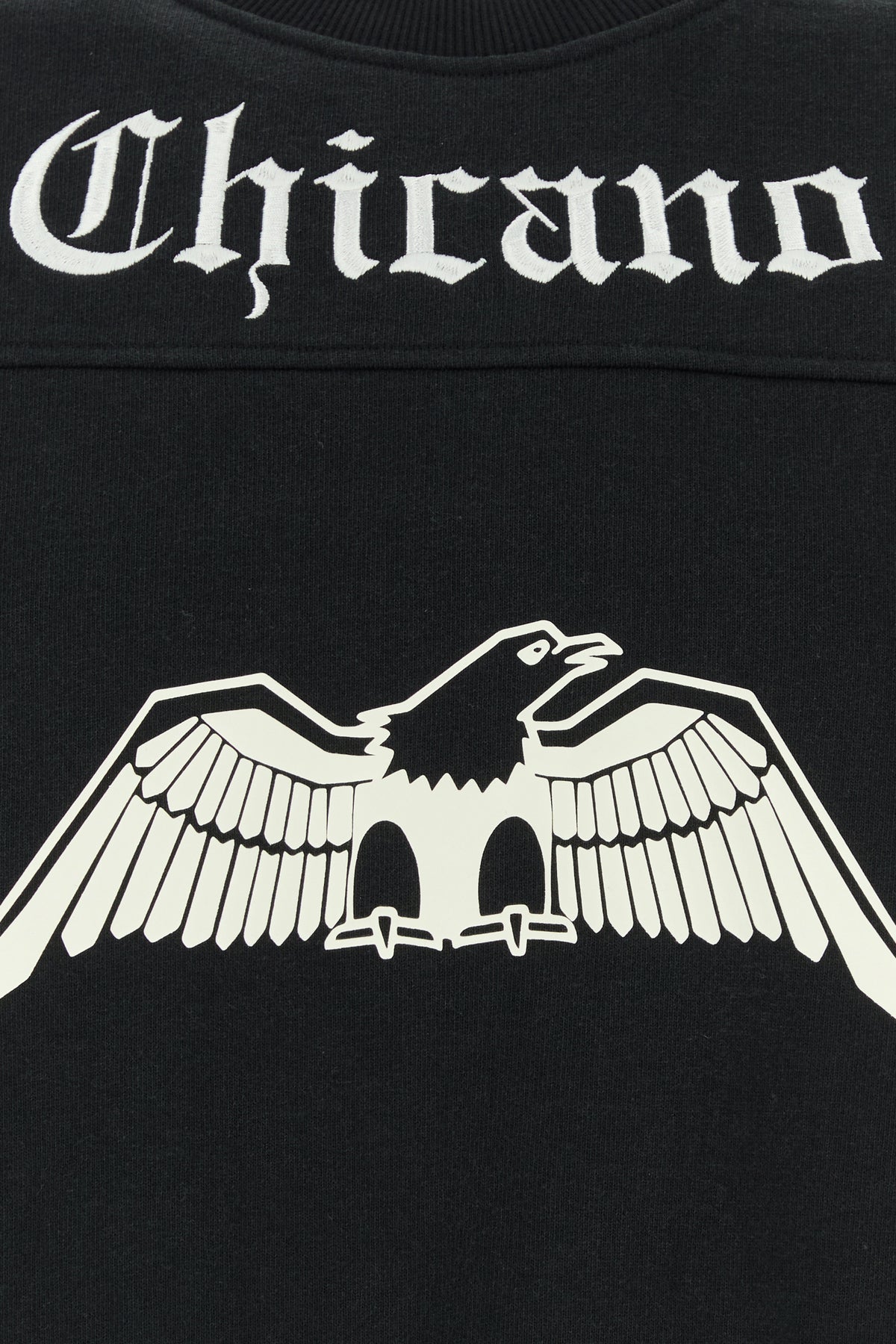 Felpa oversize realizzata in puro cotone caratterizzata da loghi ricamato sulla parte frontale e sul retro arricchita da applicazione logata sul retro.