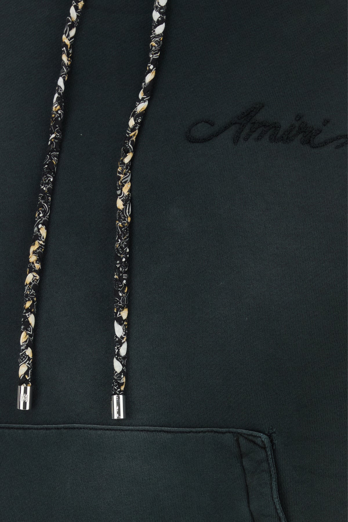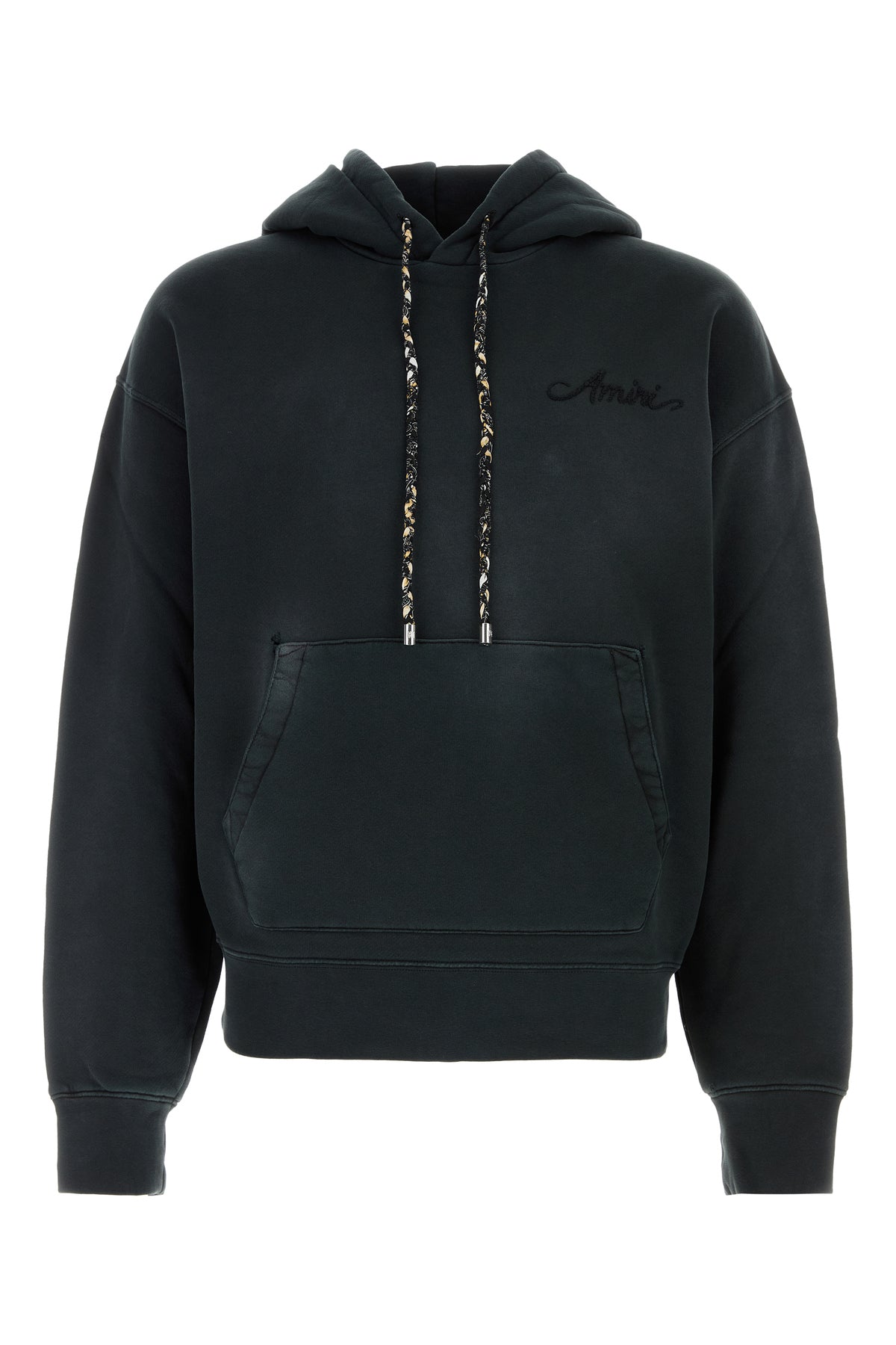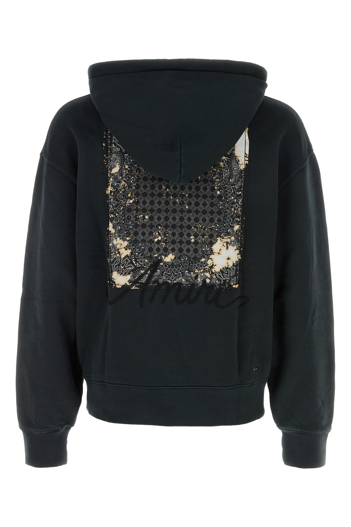 Felpa realizzata in puro cotone slavato caratterizzata da ricamo Amiri tonale sul petto arricchita da applicazione Bandana sul retro.