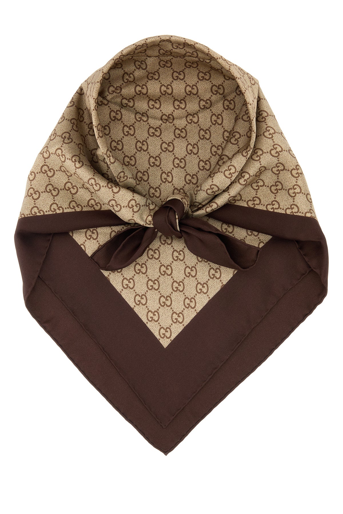 Foulard realizzato in twill di pura seta caratterizzato a ricamo GG su tutta la superficie.