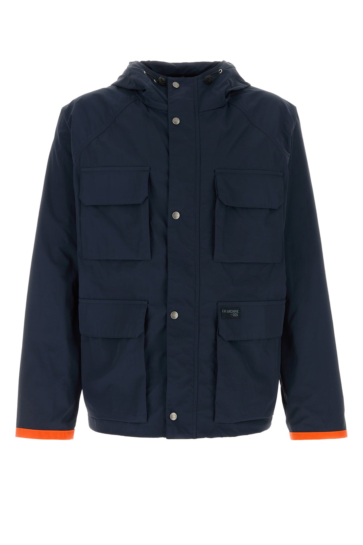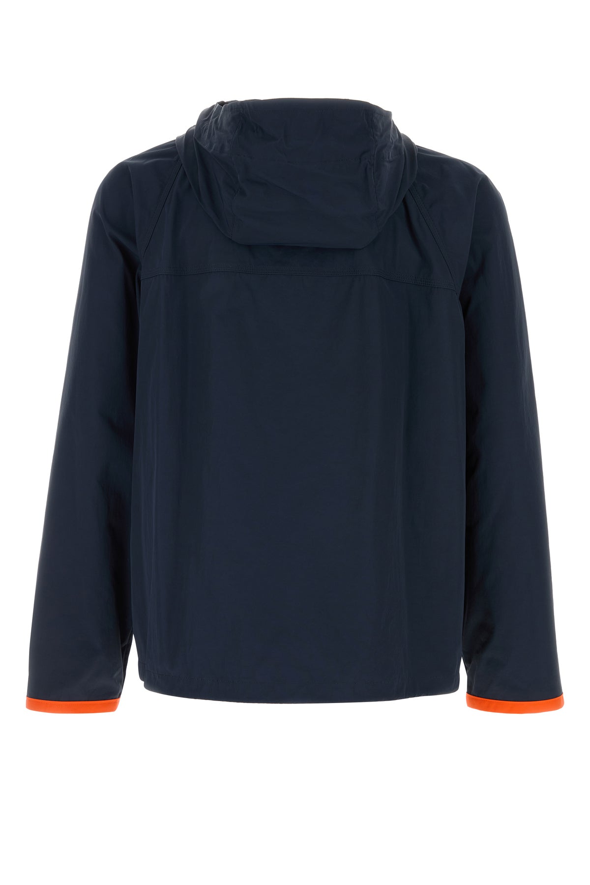Giacca a vento realizzata in nylon arricchita da etichetta logata a contrasto sulla parte frontale.