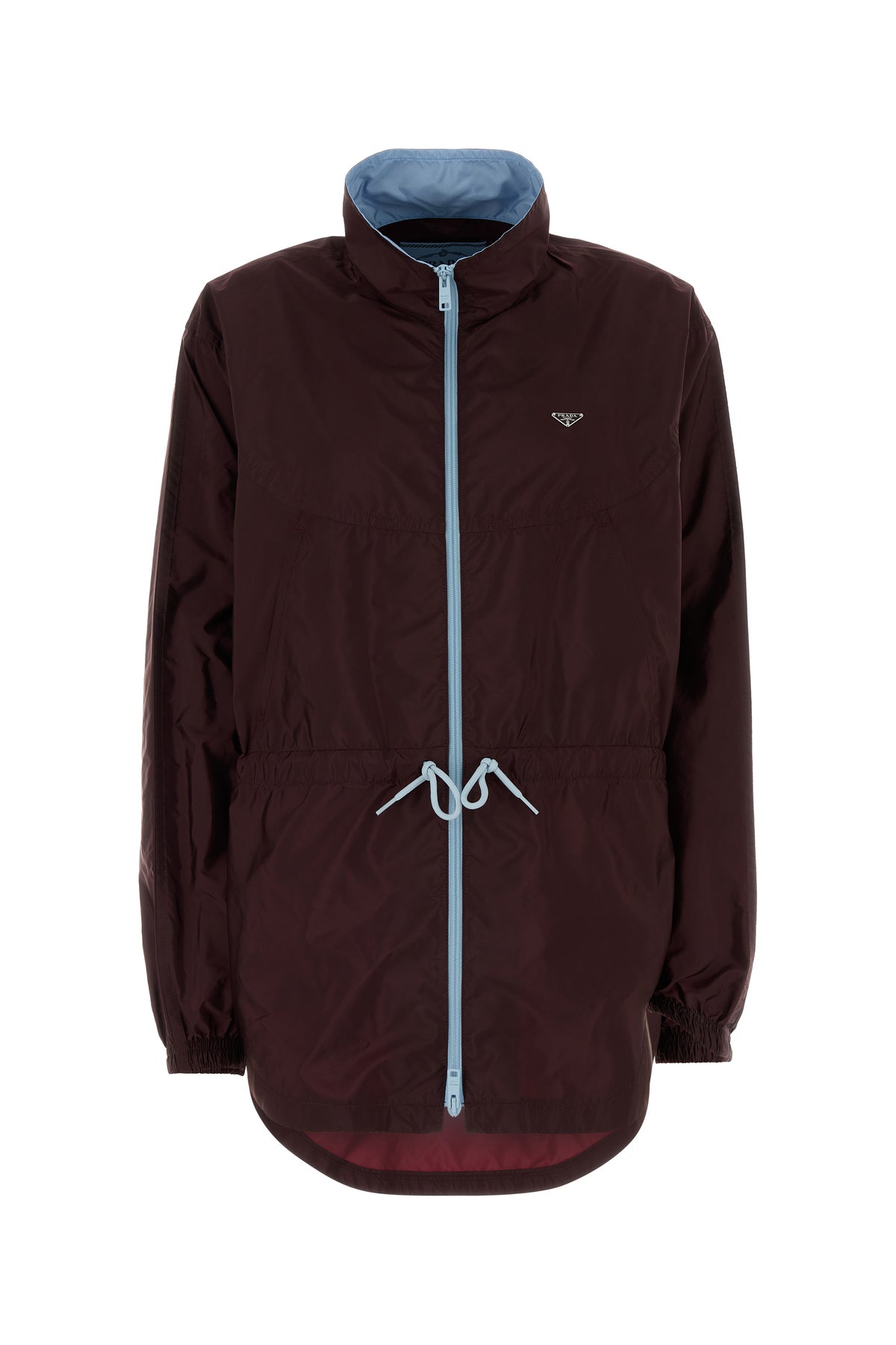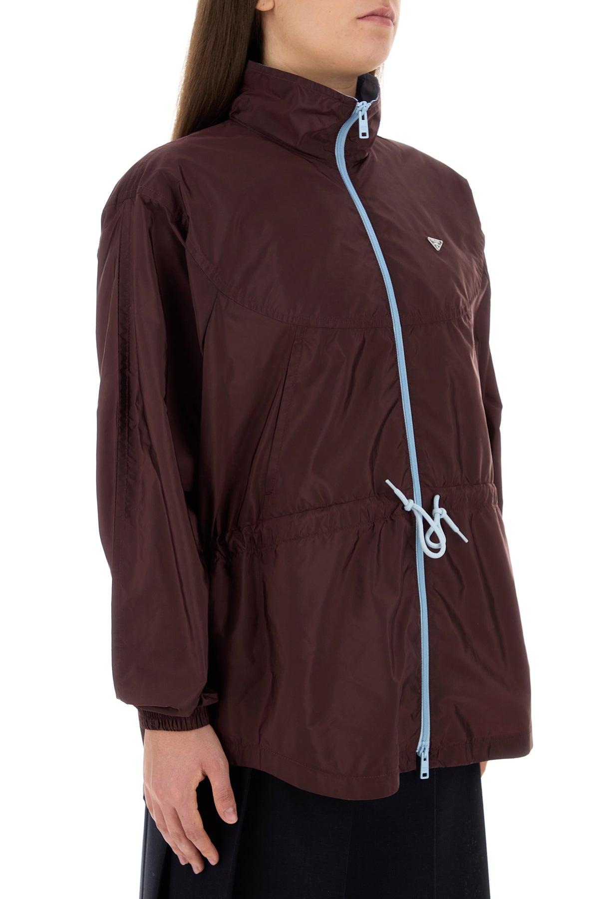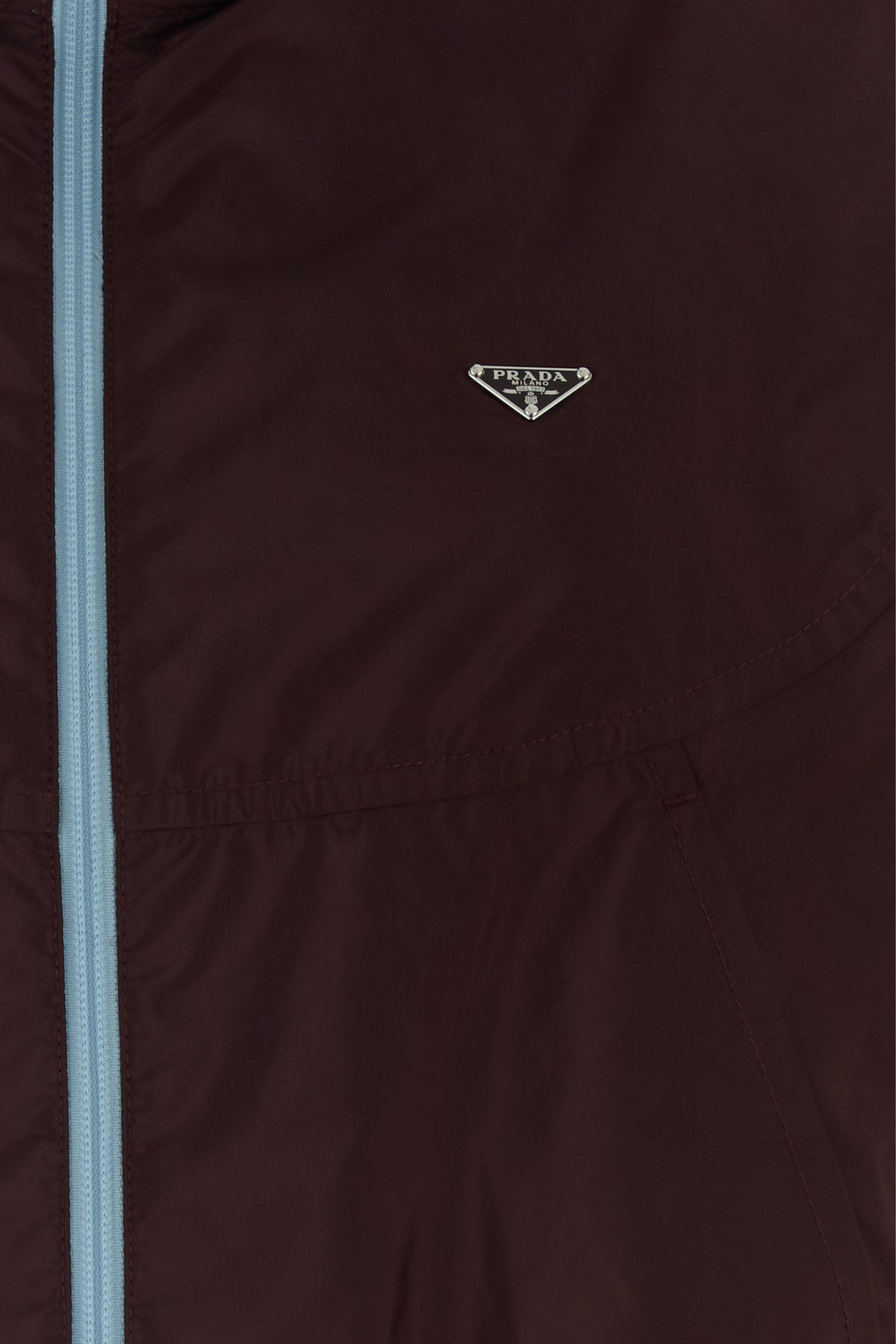 Giacca a vento realizzata in Re-Nylon arricchita da iconico triangolo logato in metallo sul petto.