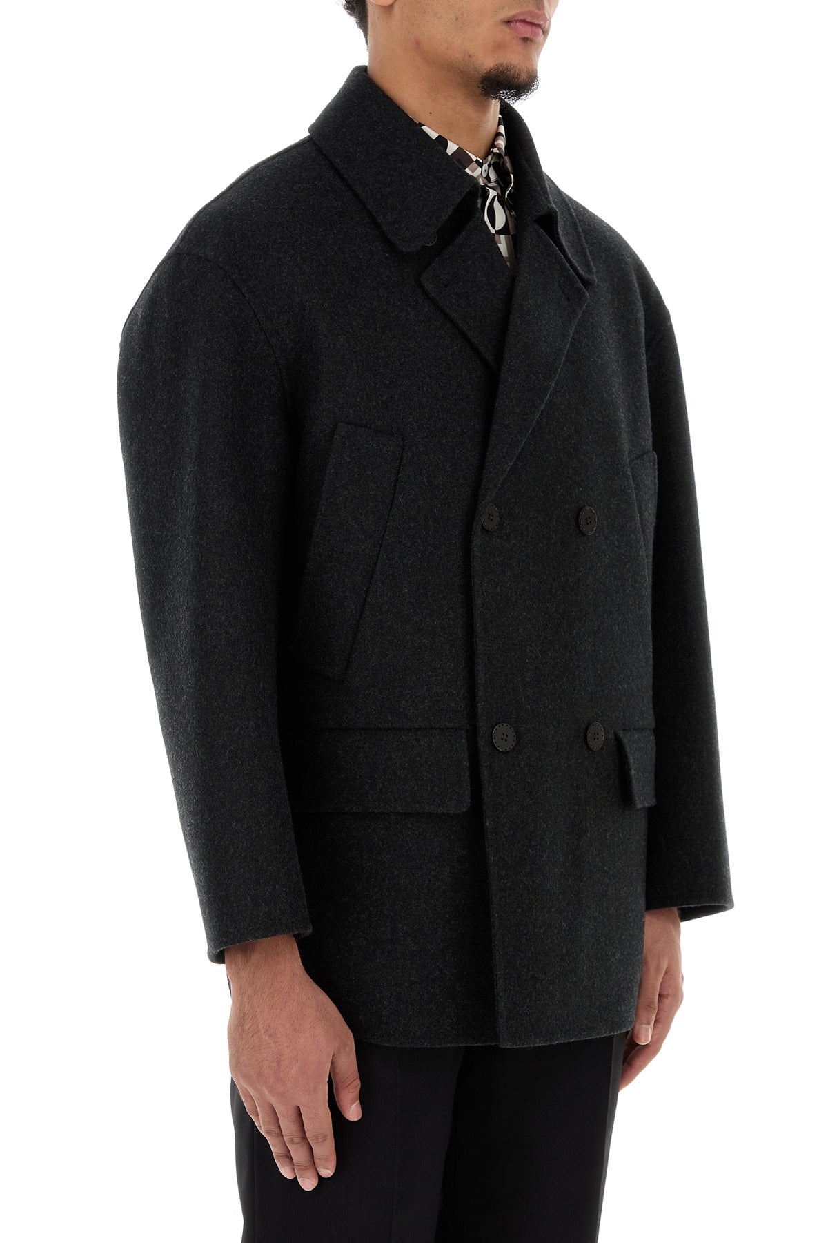Giacca realizzata in flanella di pura lana vergine caratterizzata da revers.