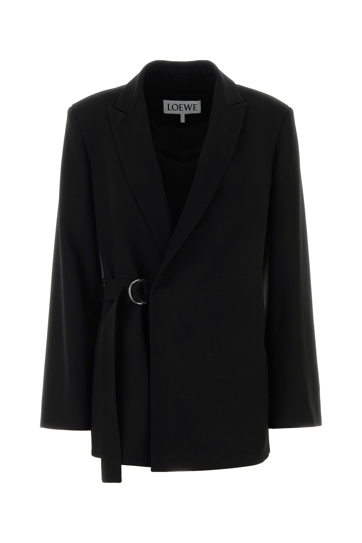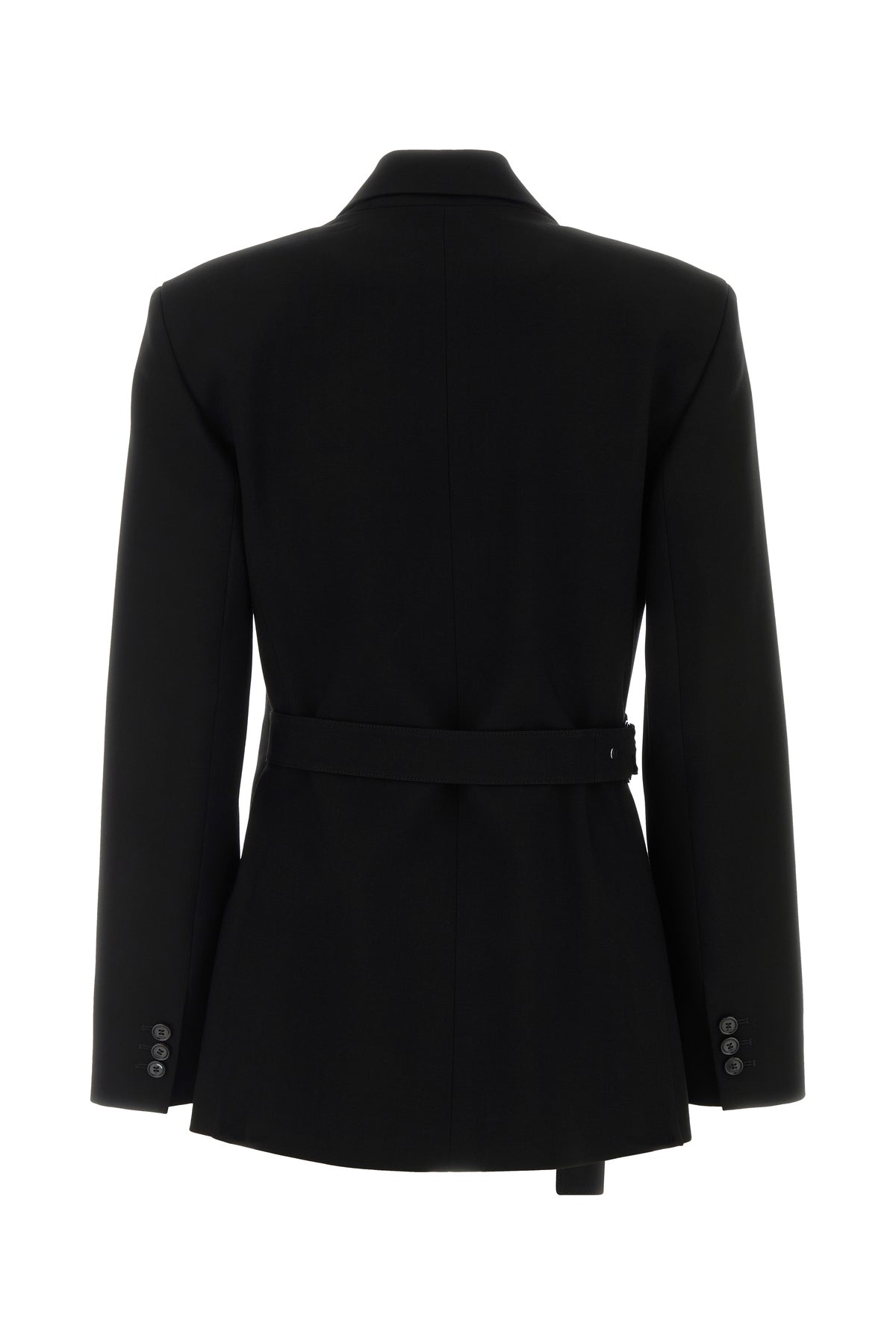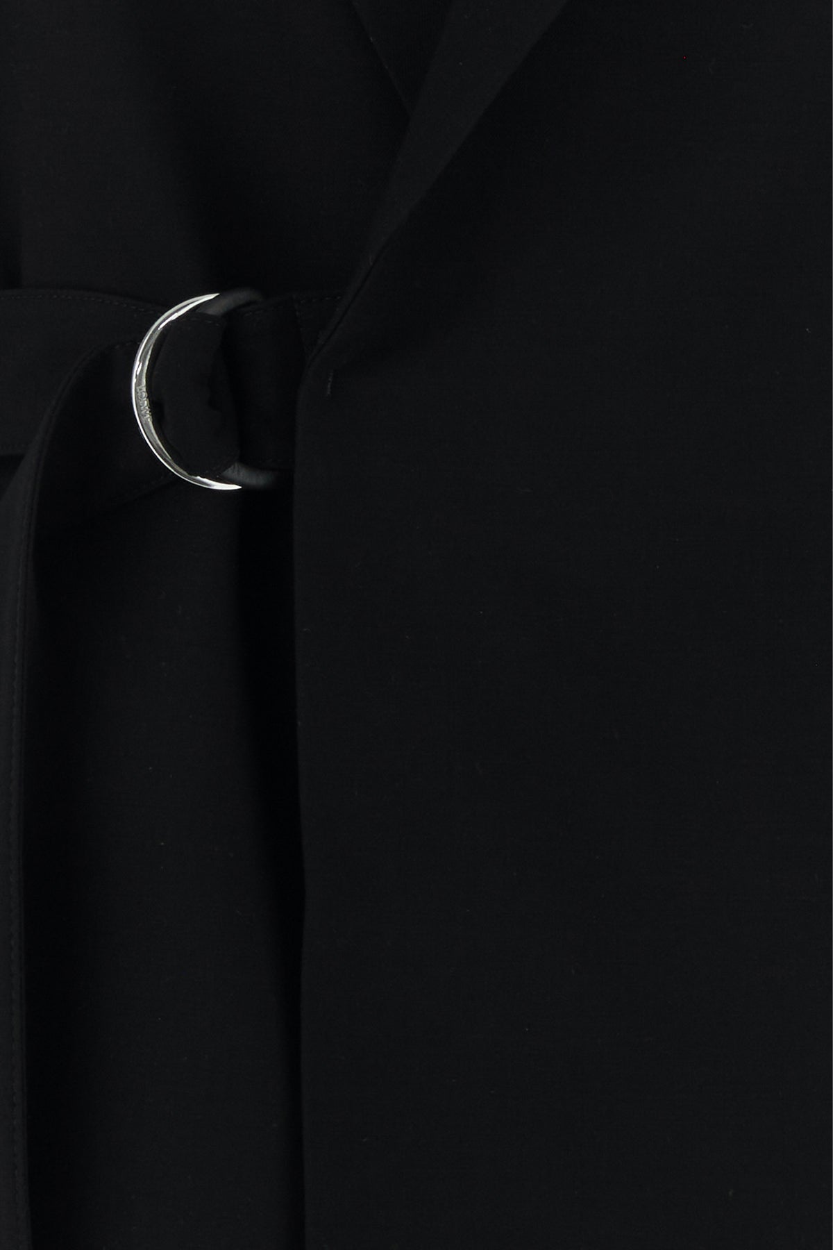 Giacca realizzata in pura lana caratterizzata da chiusura mediante cintura in vita.