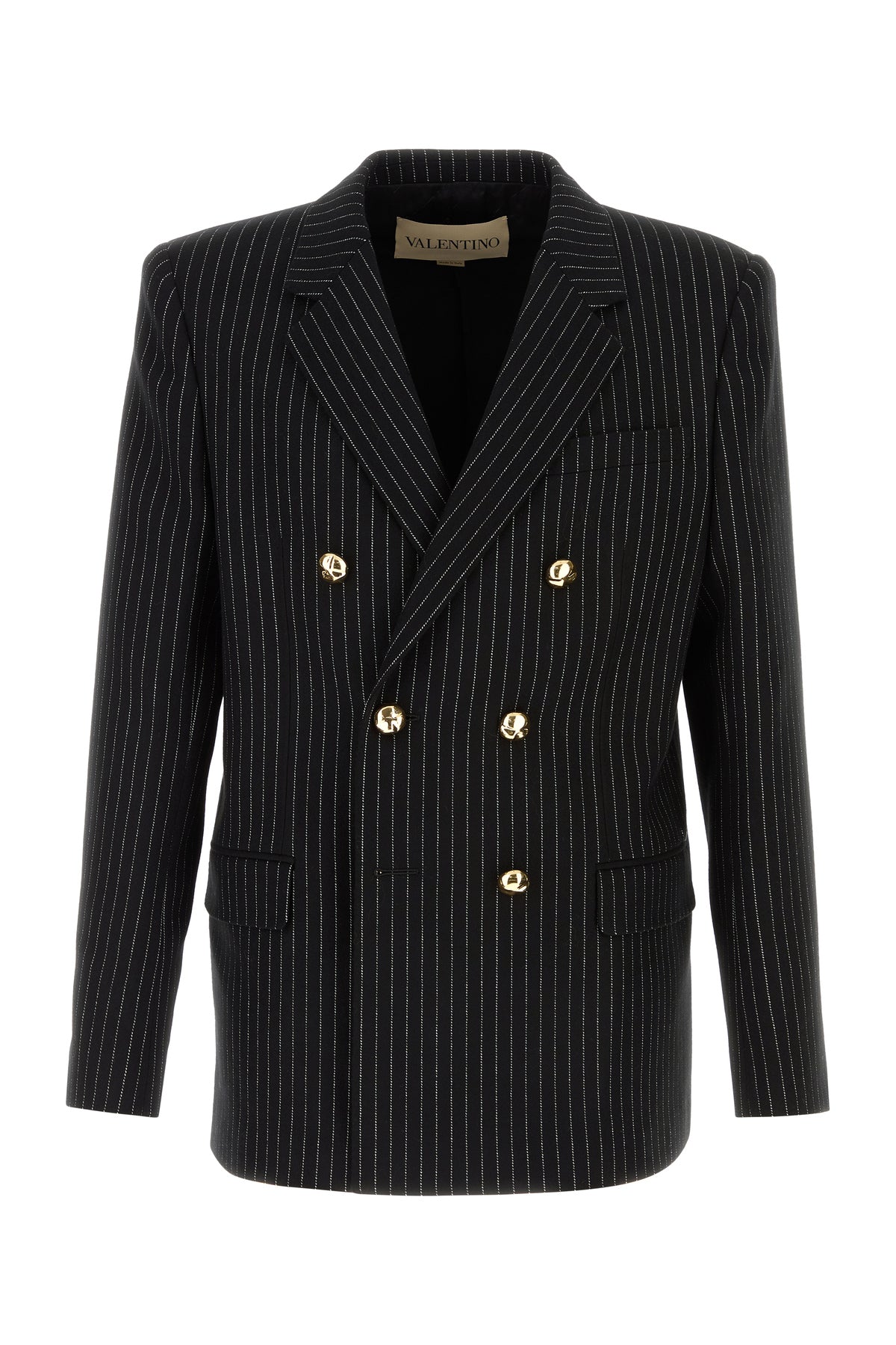 Giacca realizzata in lana e seta caratterizzata da ricamo gessato su tutta la superficie.