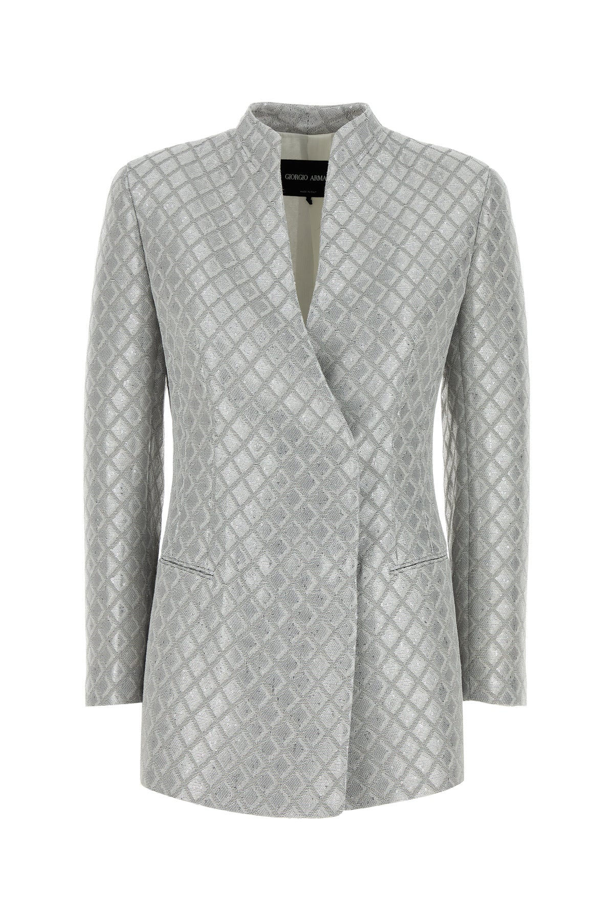 Giacca realizzata in misto poliestere con fili in lurex arricchita da paillettes su tutta la superficie.