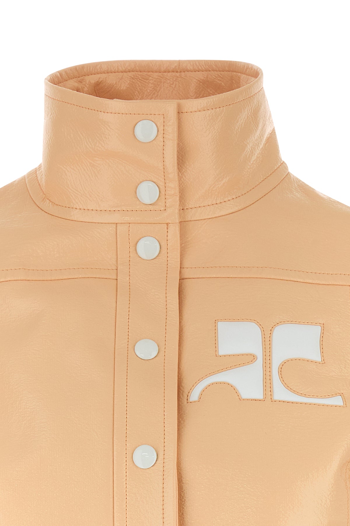 Giacca realizzata in vinile arricchita da applicazione logata a contrasto sulla parte frontale.