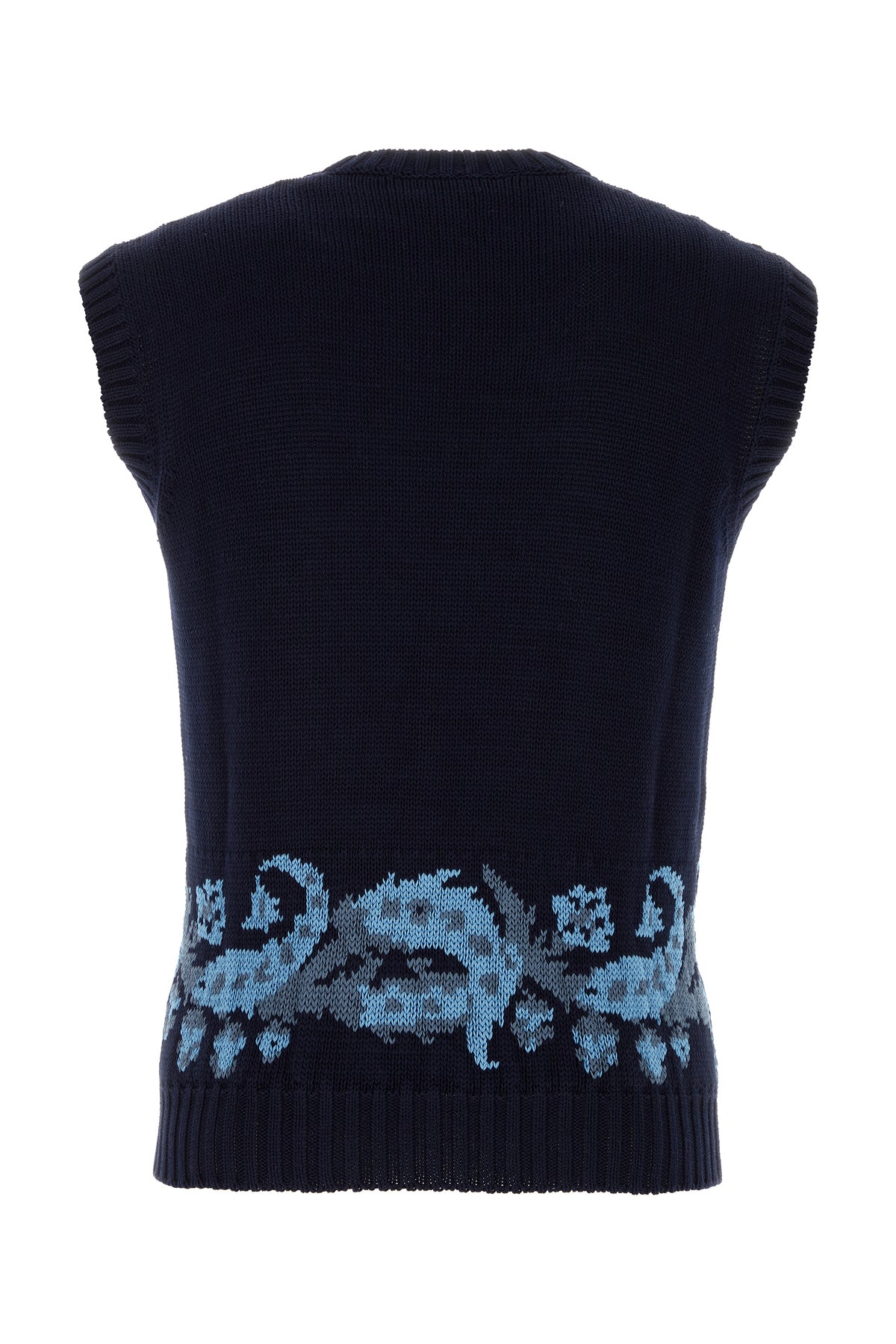Gilet realizzato in cotone caratterizzato da particolare ricamo a contrasto sulla parte frontale.