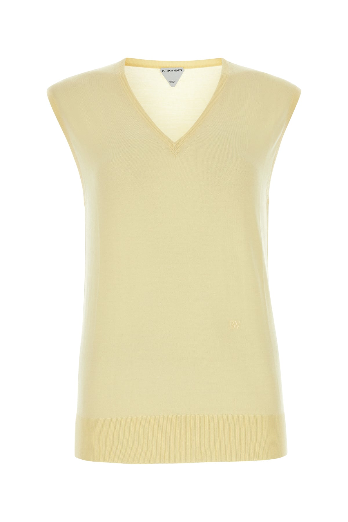 - Scollatura a V, giromanica e fondo a costine