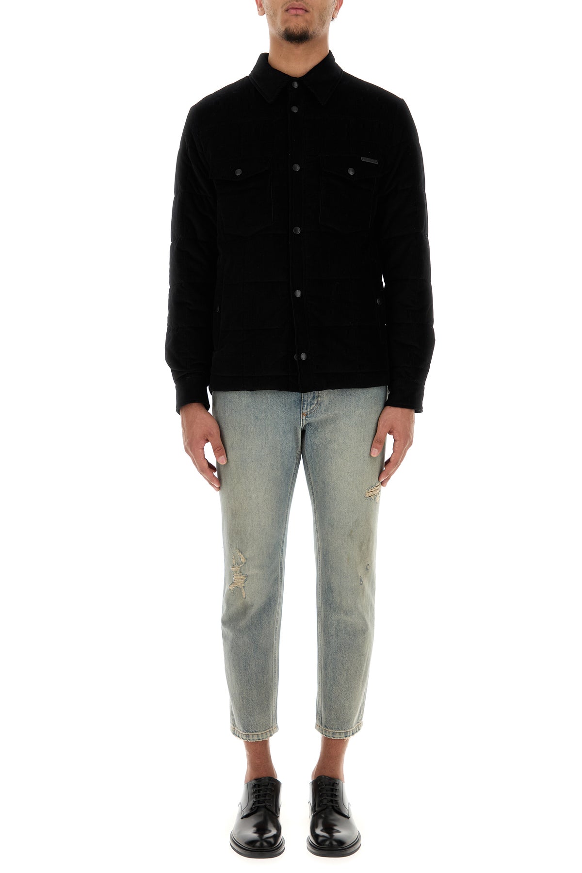 Giubbino imbottito realizzato in velluto a coste trapuntato arricchito da etichetta logata tonale sul petto.
