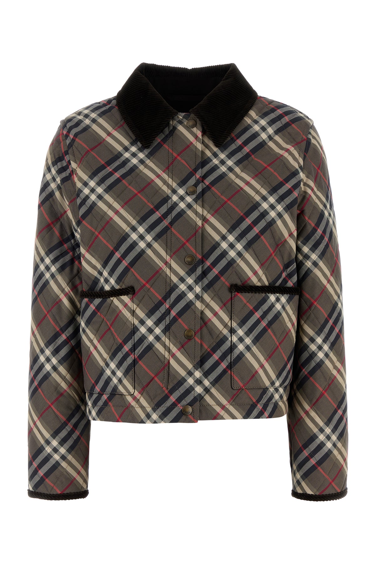 Giubbino realizzato in puro cotone trapuntato caratterizzato da ricamo Burberry Check su tutta la superficie arricchito da etichetta Equestrian Knight sul lato.