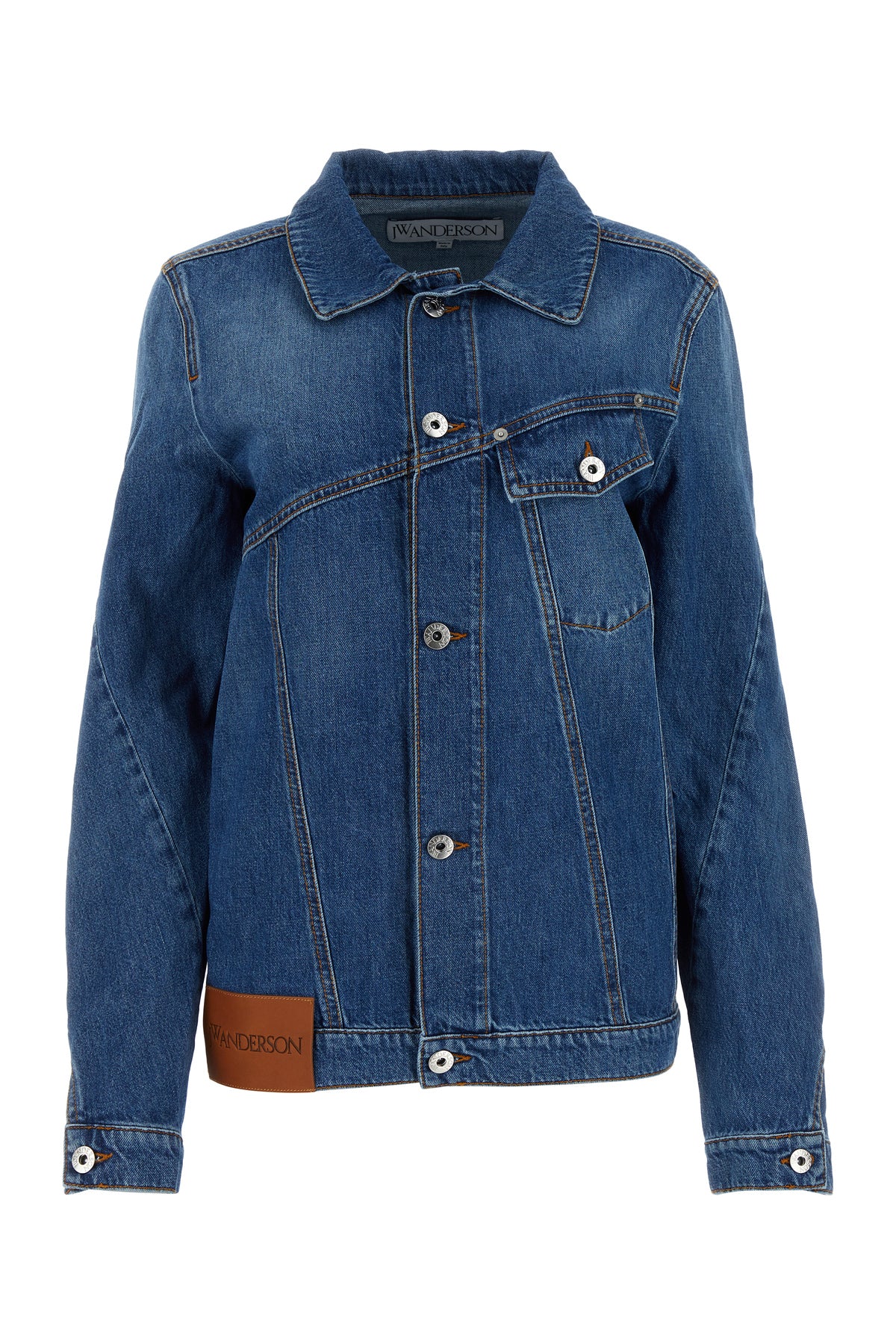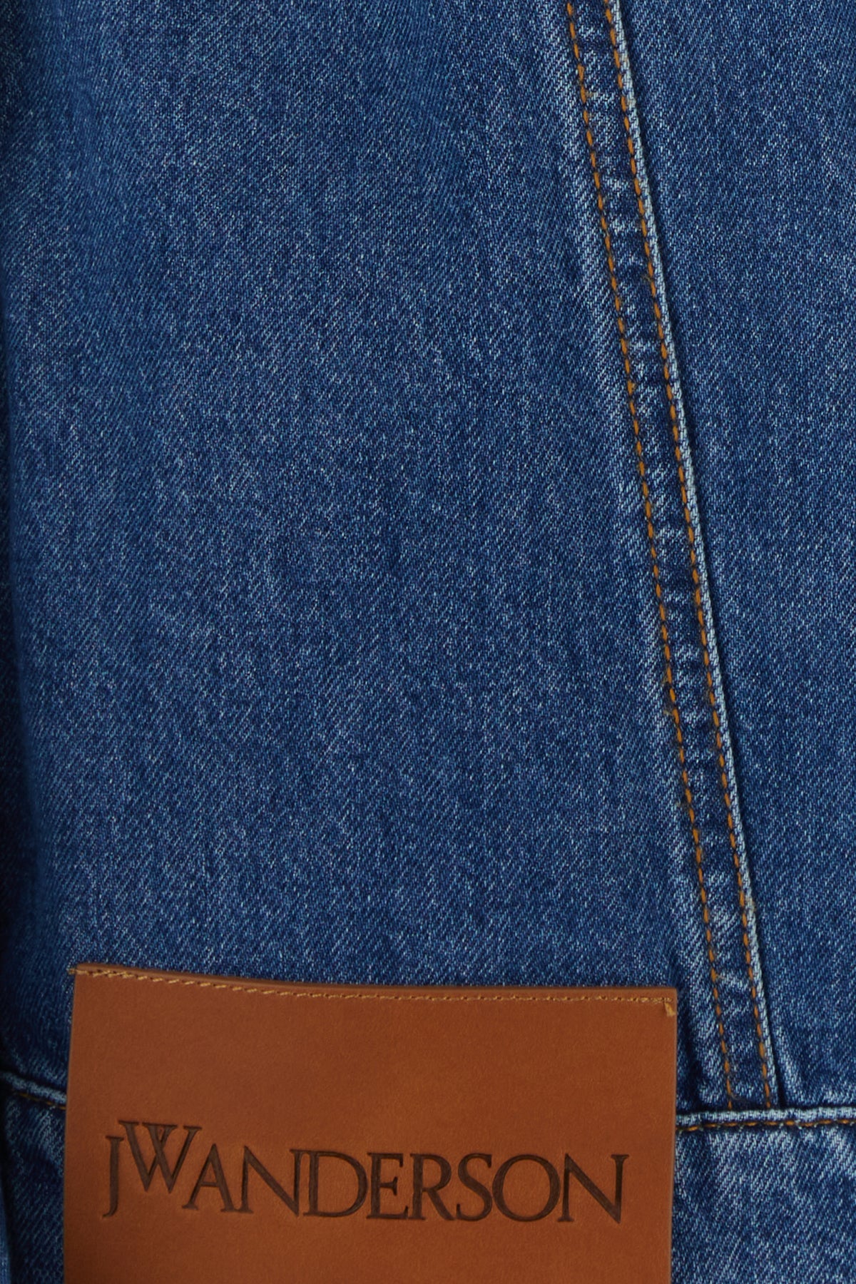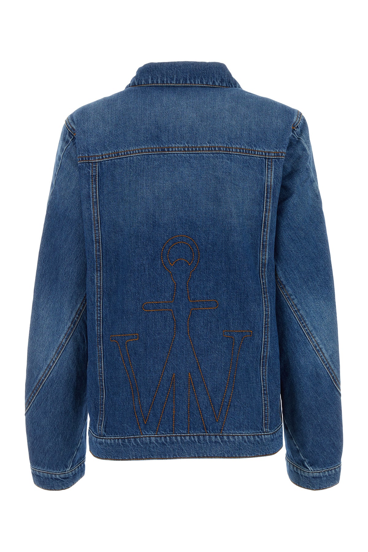 Giubbino realizzato in denim di puro cotone ad effetto slavato caratterizzato da ricamo Anchor JWA a contrasto sul retro arricchito da etichetta logata a contrasto sulla parte frontale.