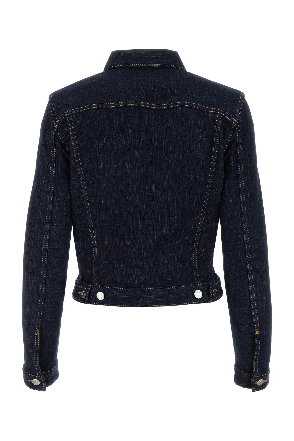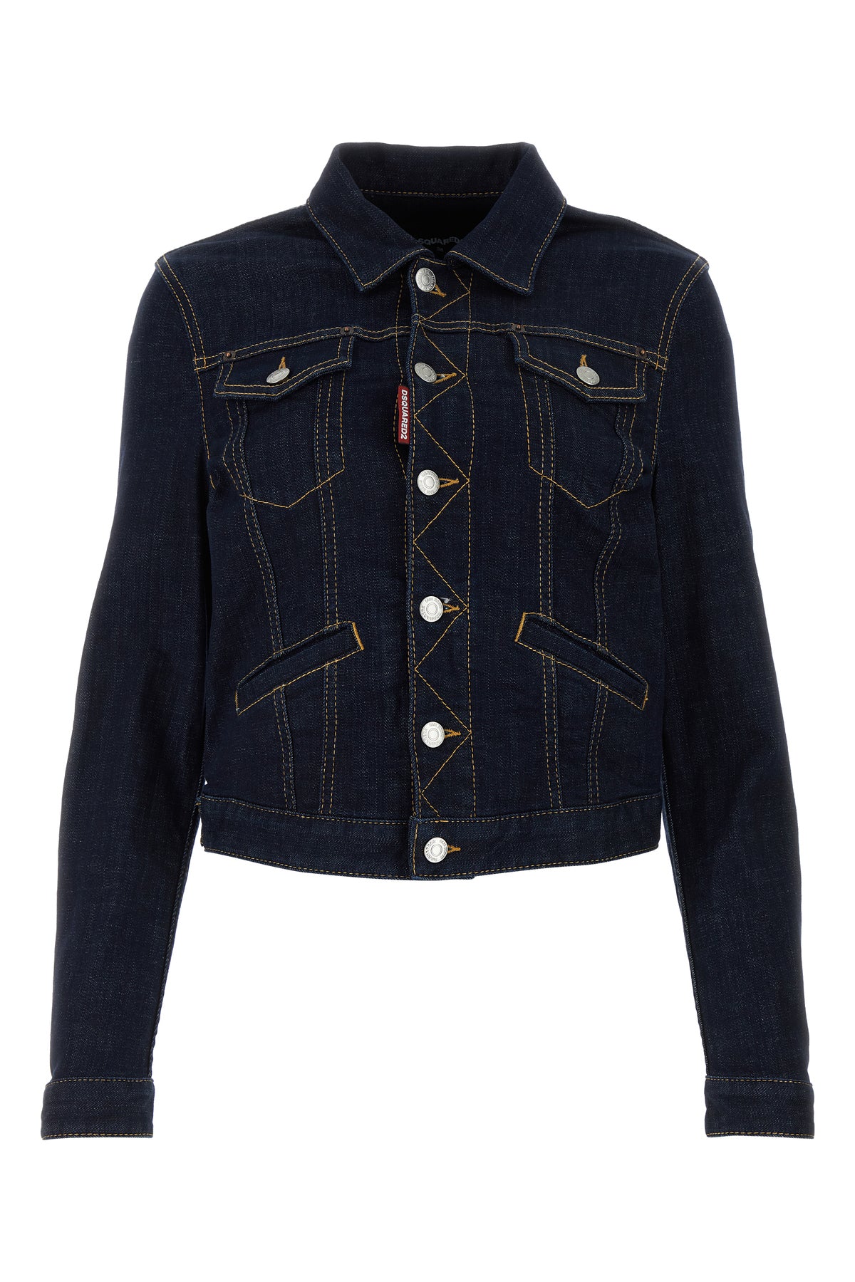 Giubbino realizzato in denim di cotone stretch arricchito da etichetta logata sulla parte frontale.