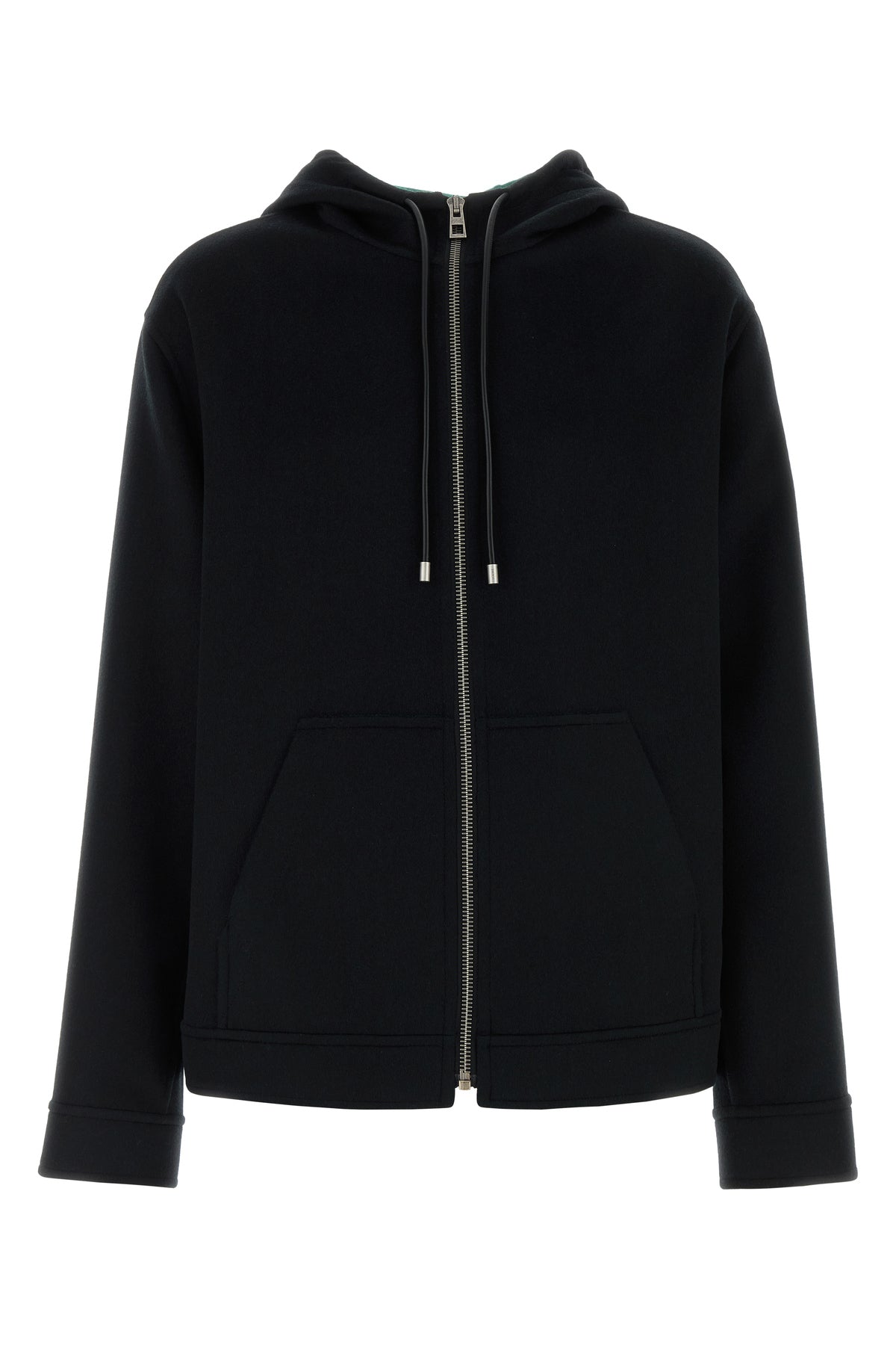 Giubbino realizzato in flanella di lana e cashmere arricchiti da etichetta logata sul cappuccio con coulisse.