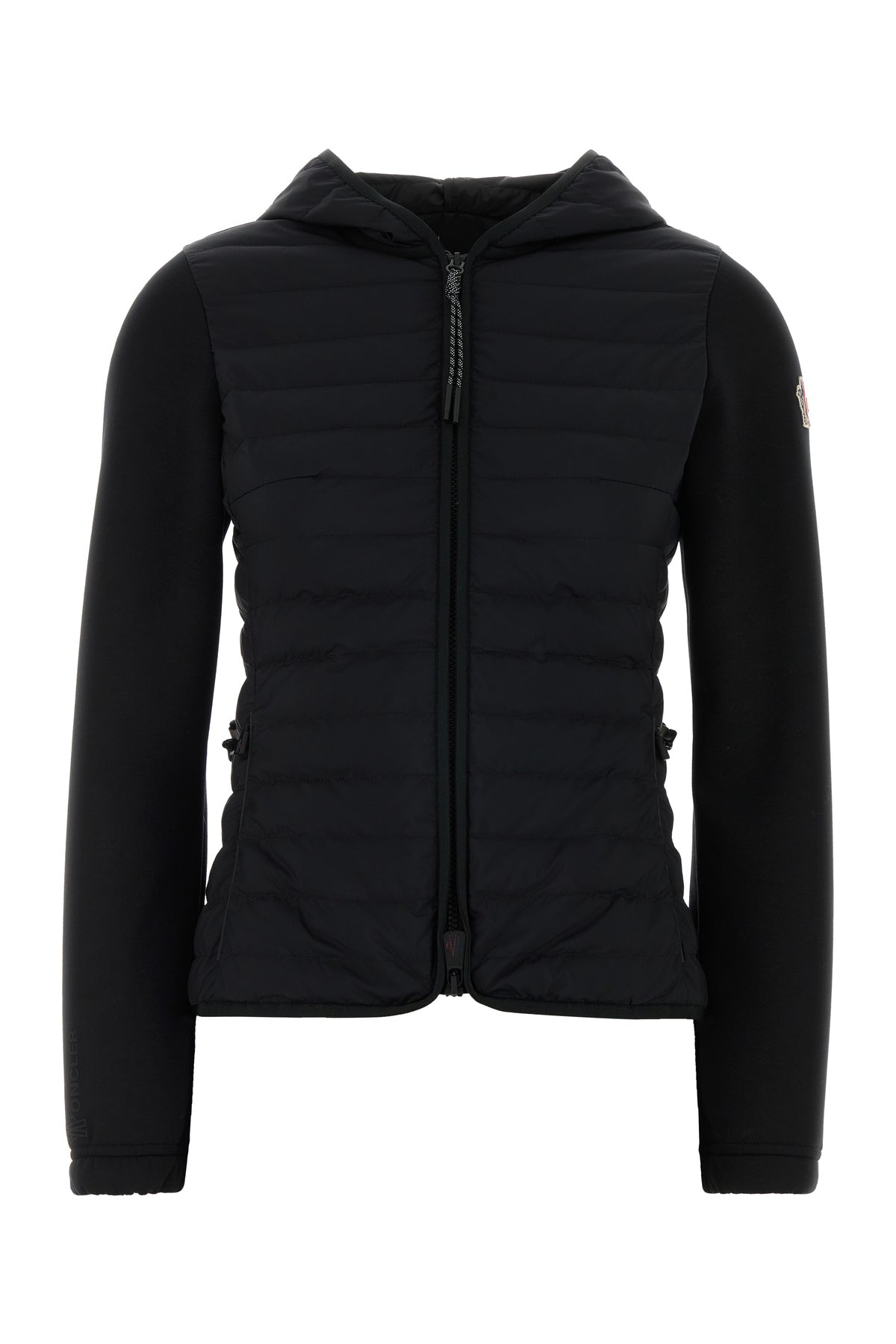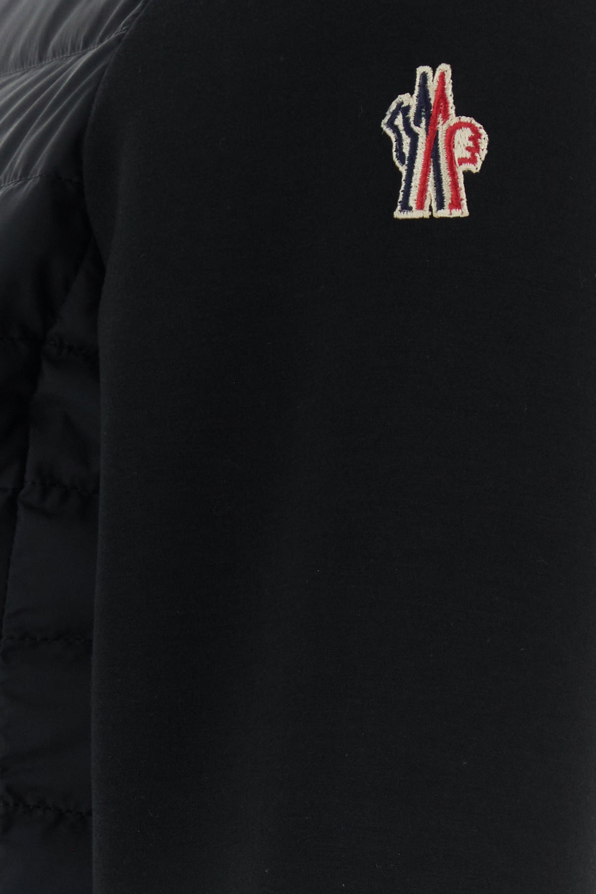 Giubbino realizzato in misto poliestere stretch con inserto trapuntato sulla parte frontale arricchiti da applicazione logata sulla manica.