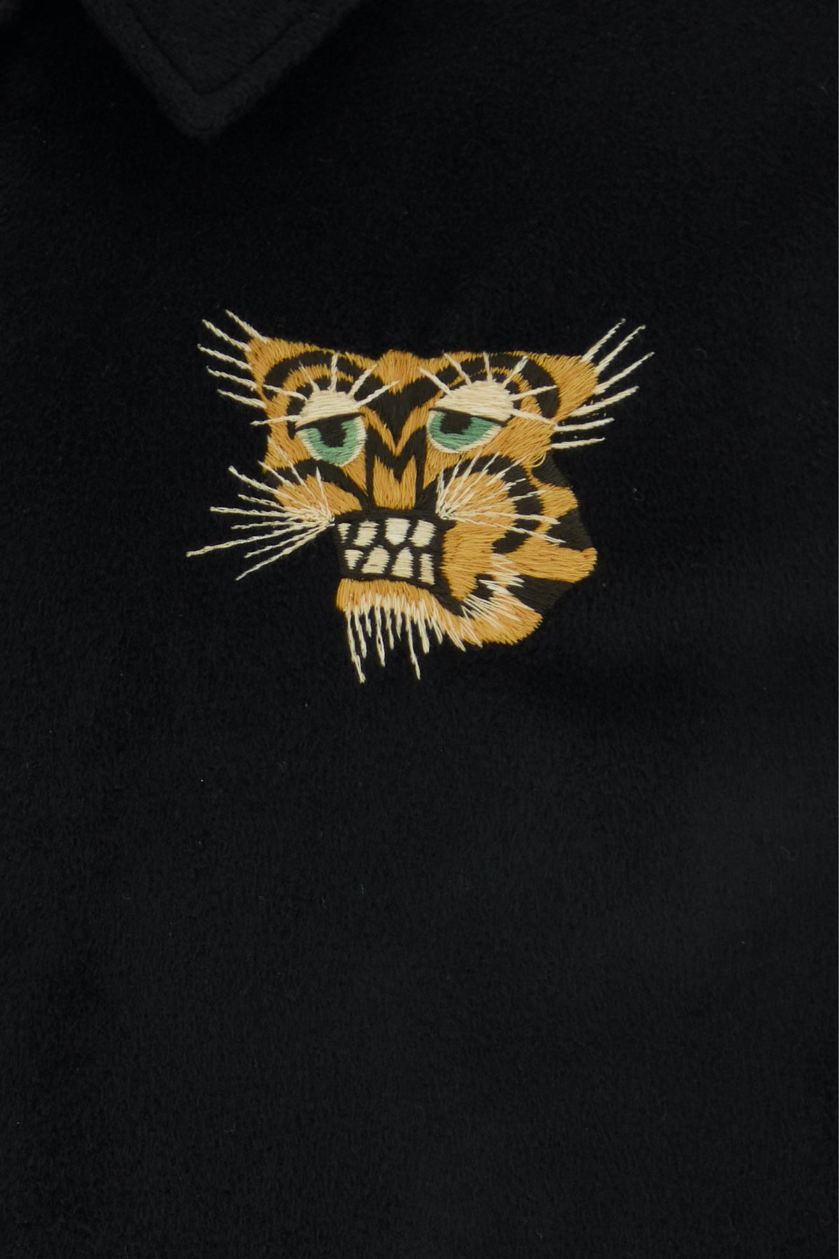 Giubbino realizzato in flanella di pura seta caratterizzato da particolare ricamo sul petto.