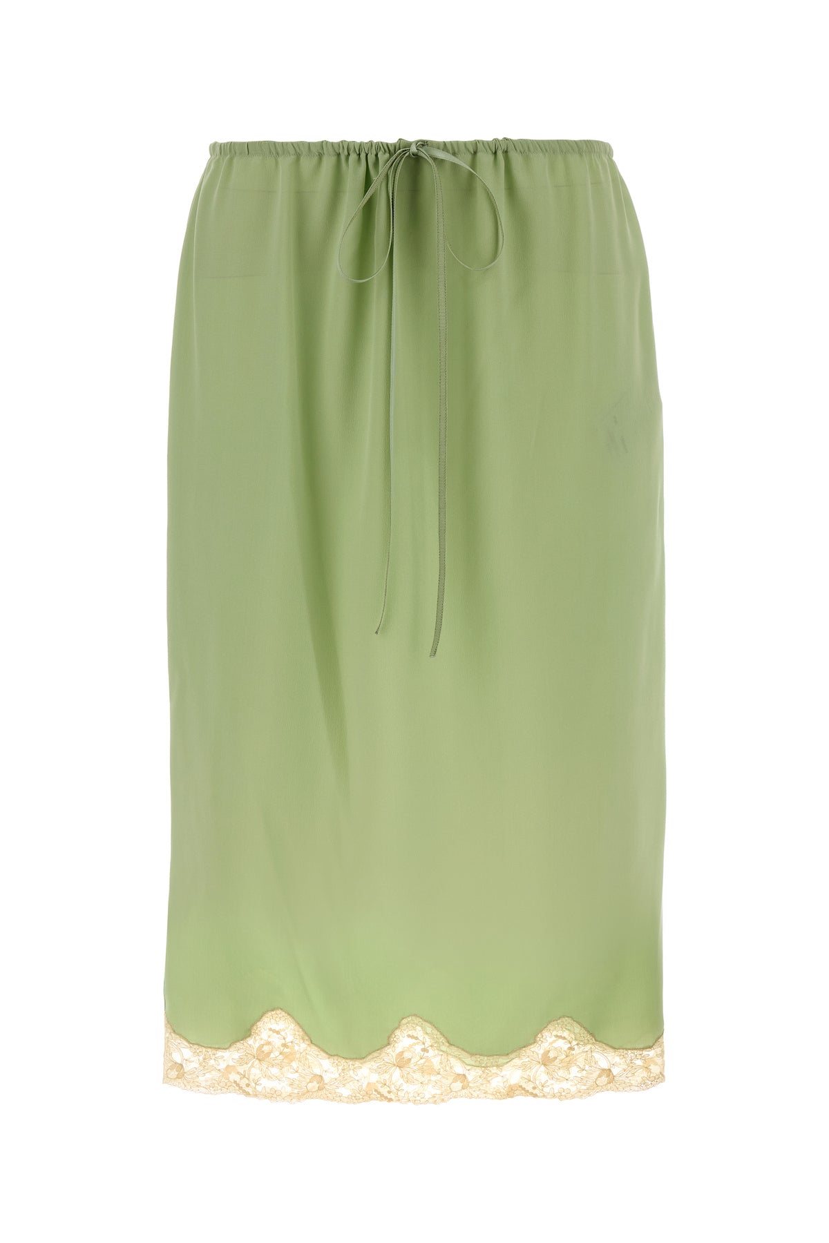 Gonna midi realizzata in crepe di pura seta arricchita da inserto in pizzo sul fondo.