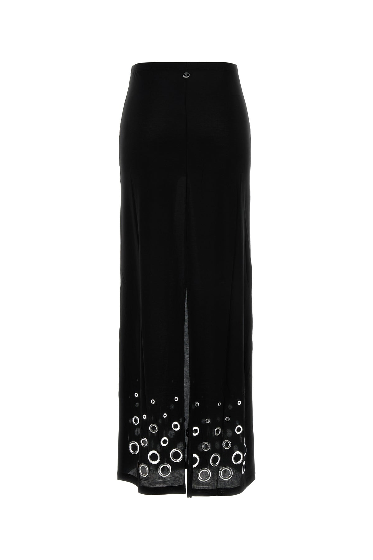Gonna realizzata in curpo stretch arricchita da borchie metalliche sul fondo.