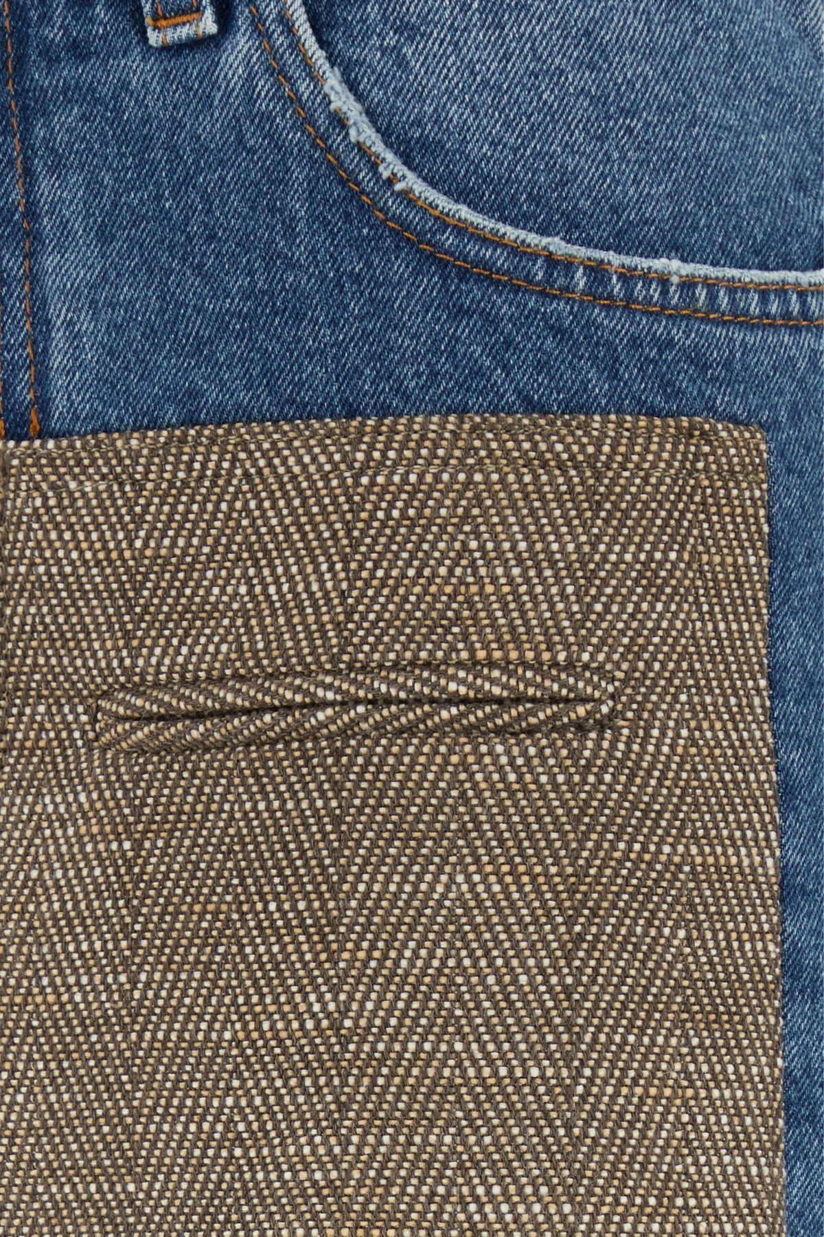 Gonna realizzata in denim di puro cotone con inserto in tweed sulla parte frontale.