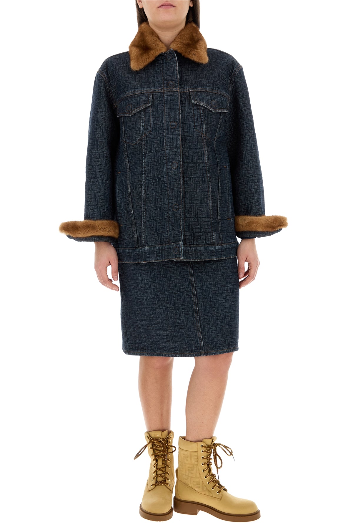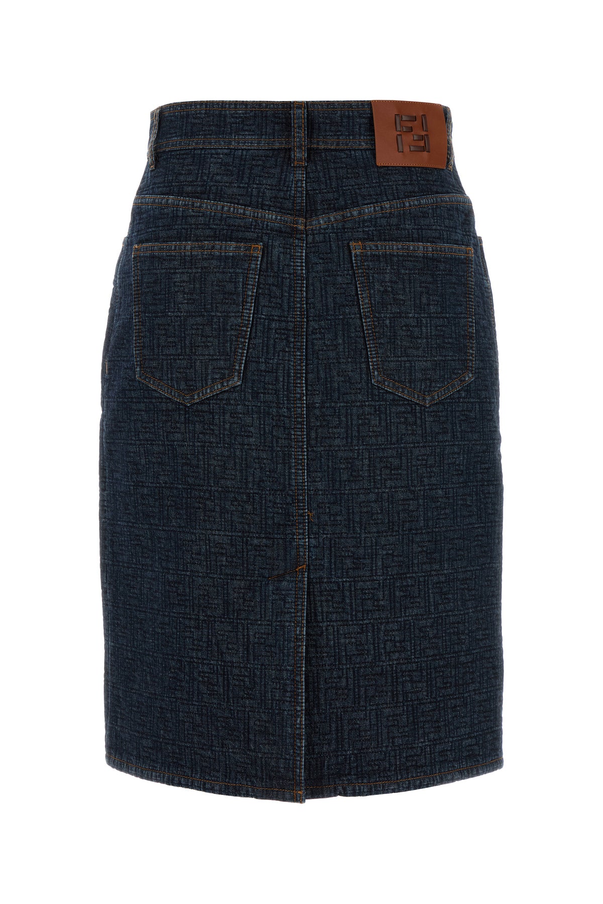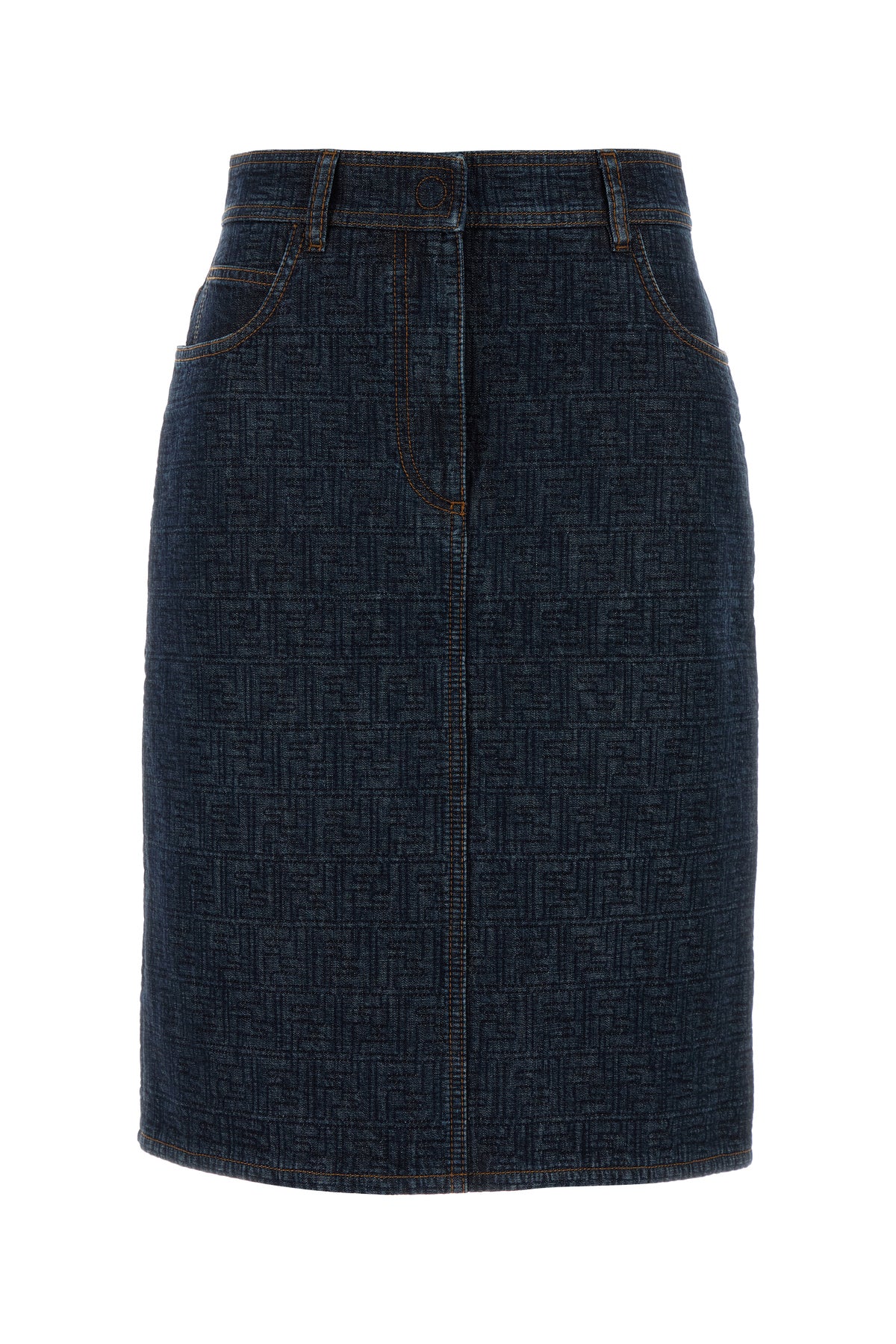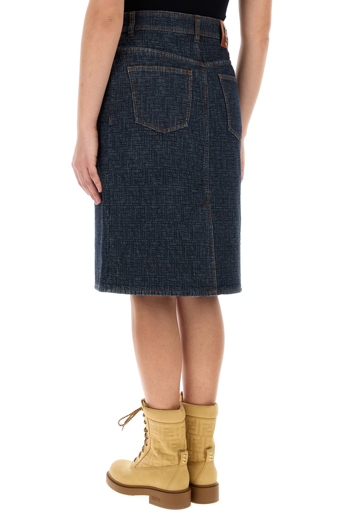 Gonna realizzata in denim di puro cotone caratterizzata da ricamo FF su tutta la superficie arricchita da etichetta logata sul retro.
