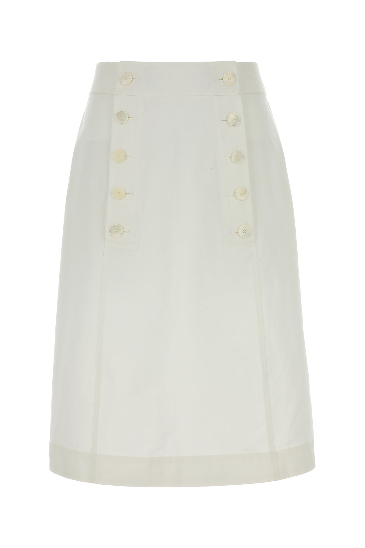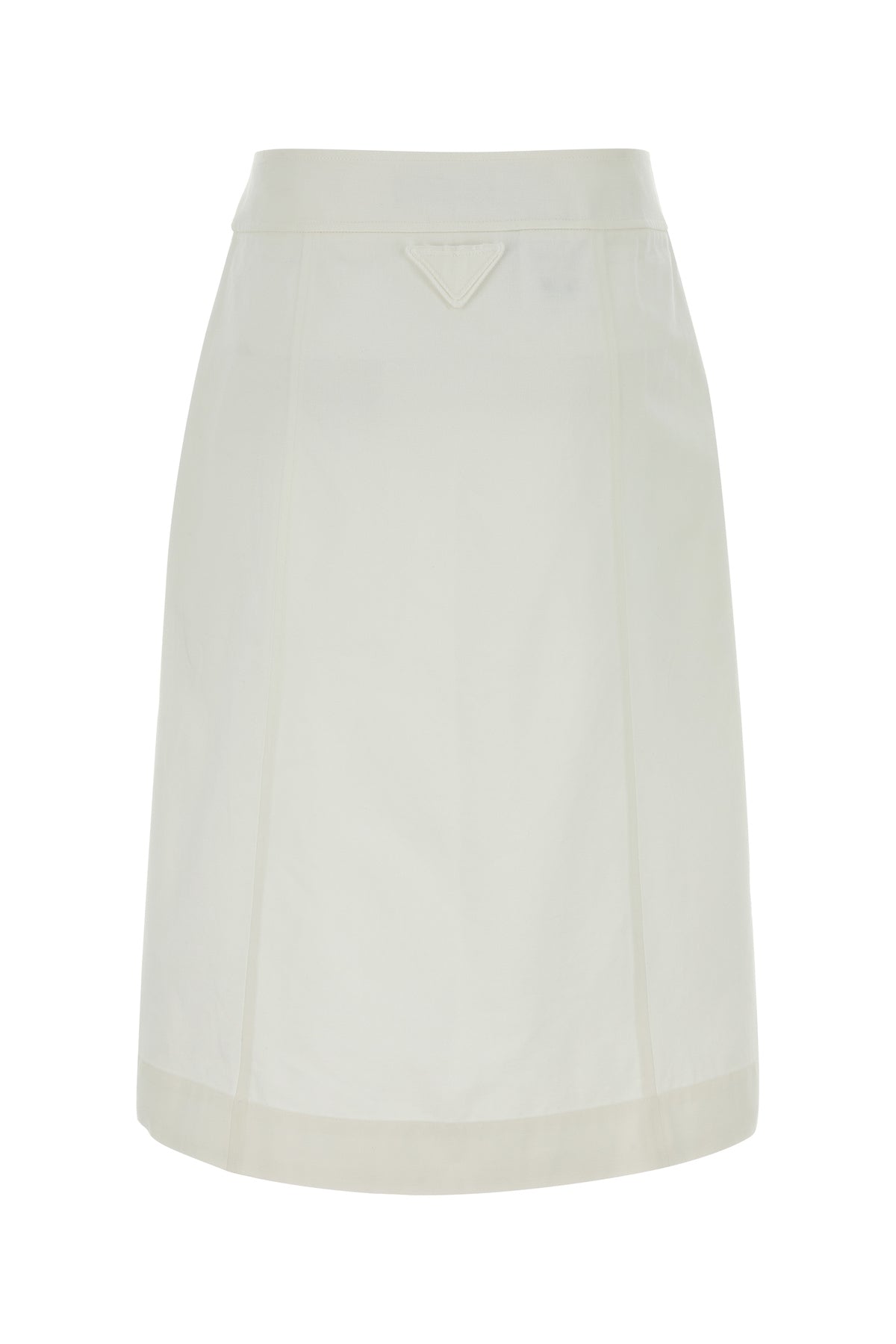 Gonna svasata realizzata in gabardine di puro cotone arricchita da iconico triangolo in tessuto tonale sul retro.
