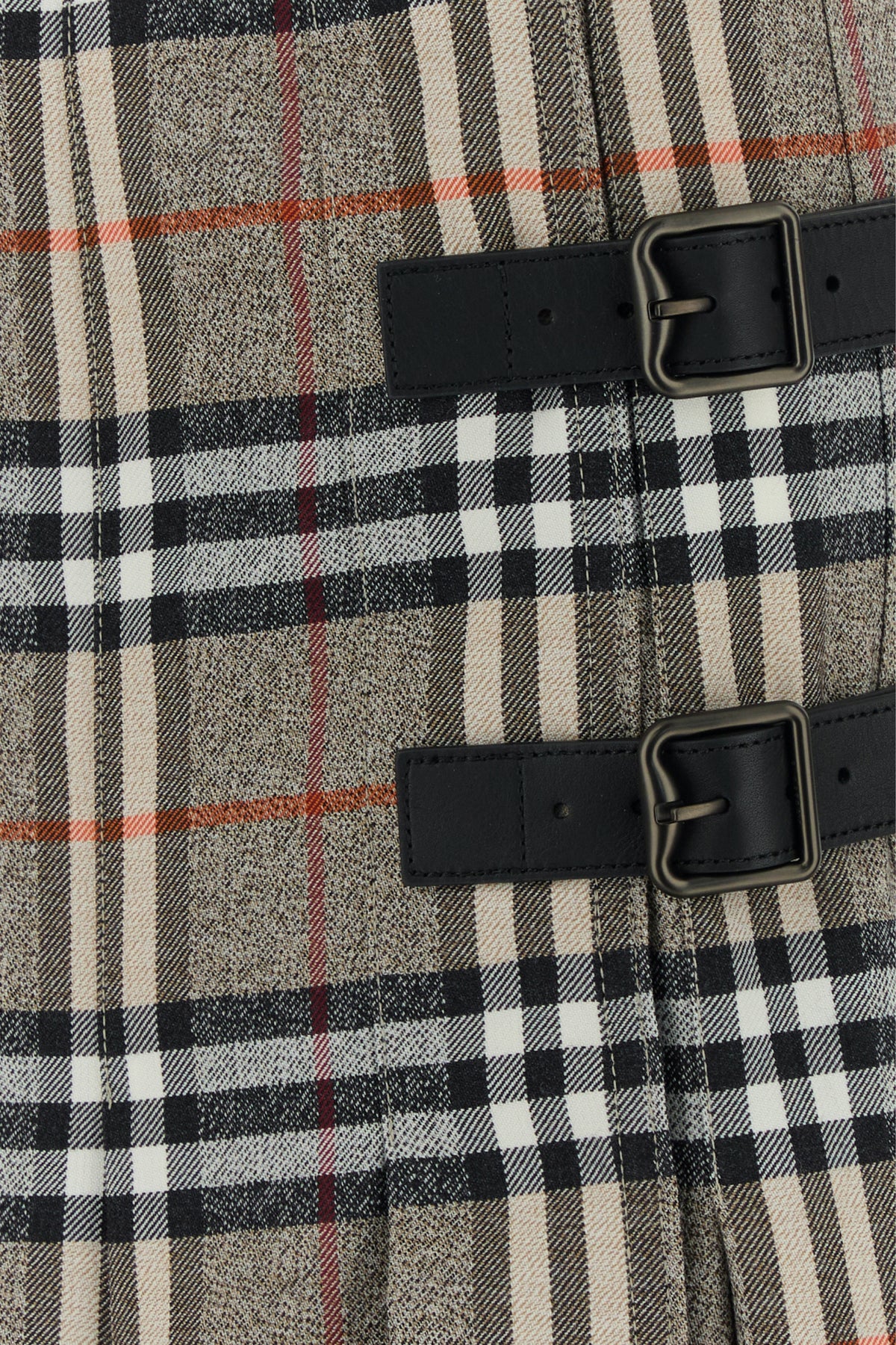 Gonna realizzata in pura lana caratterizzata da ricamo Burberry Check su tutta la superficie.