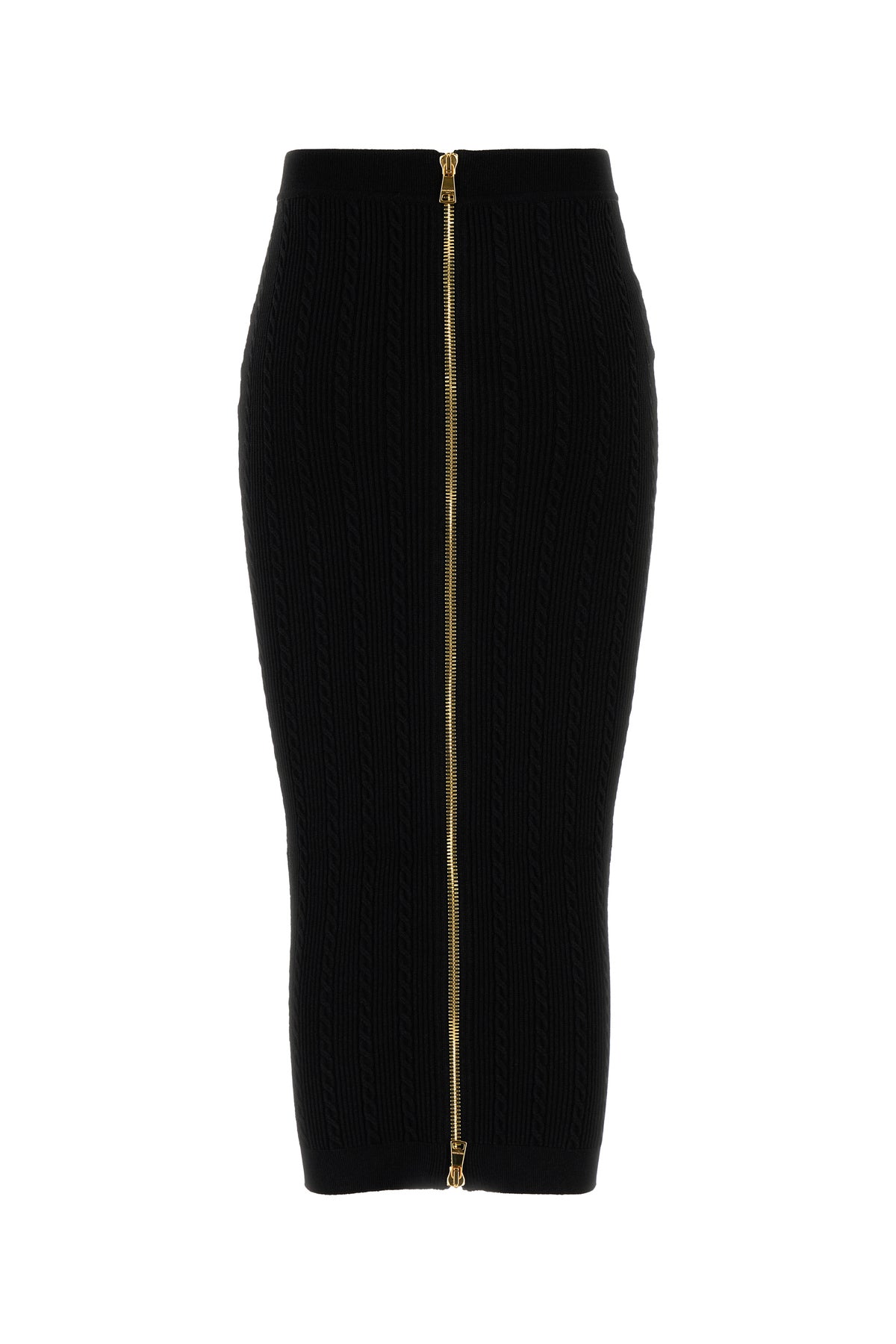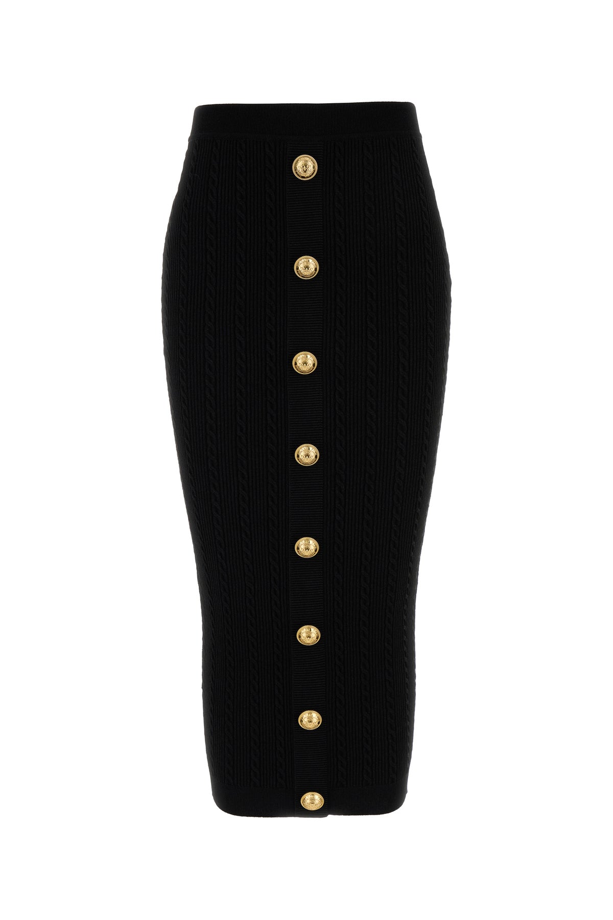 Gonna aderente realizzata in misto viscosa arricchita da bottoni decorativi sulla parte frontale.