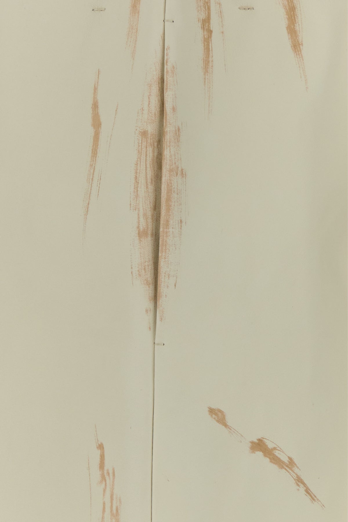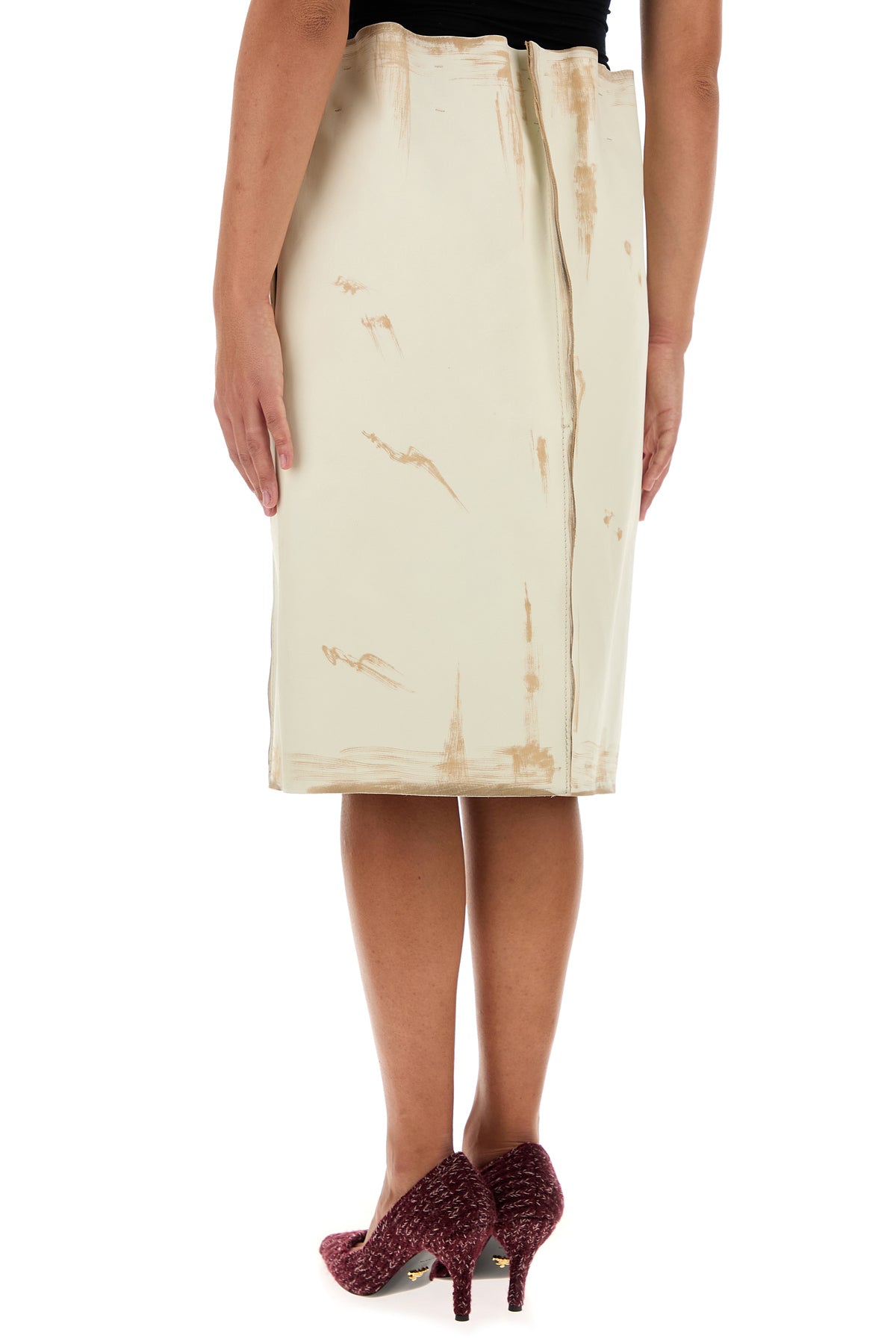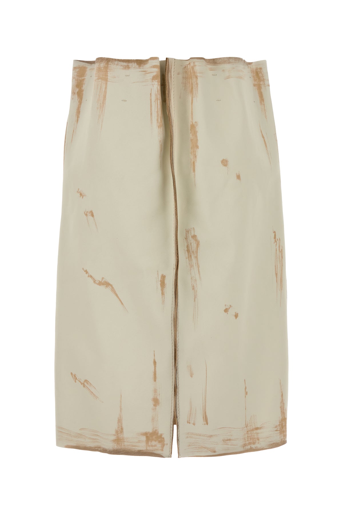 Gonna svasata realizzata in pelle di vitello caratterizzata da sporcature intenzionali.