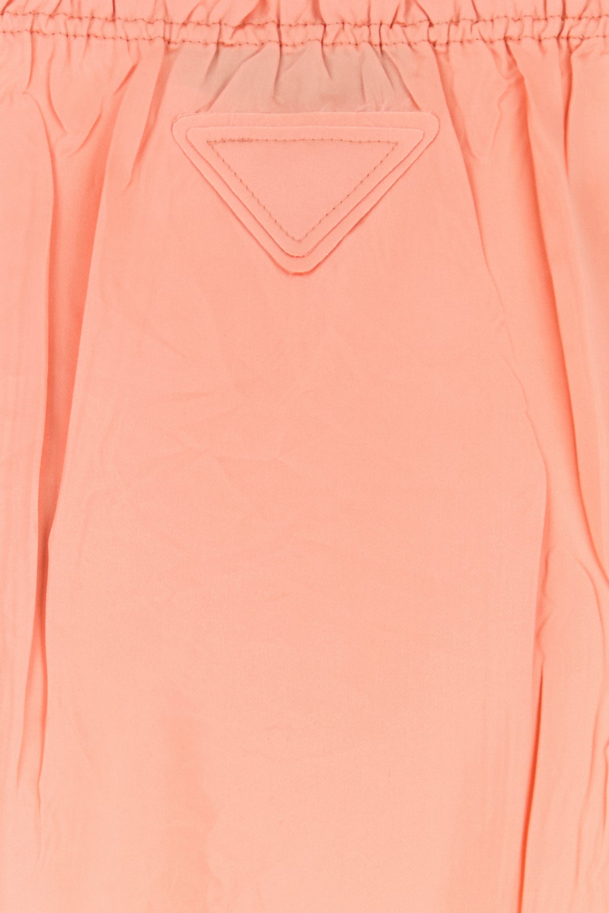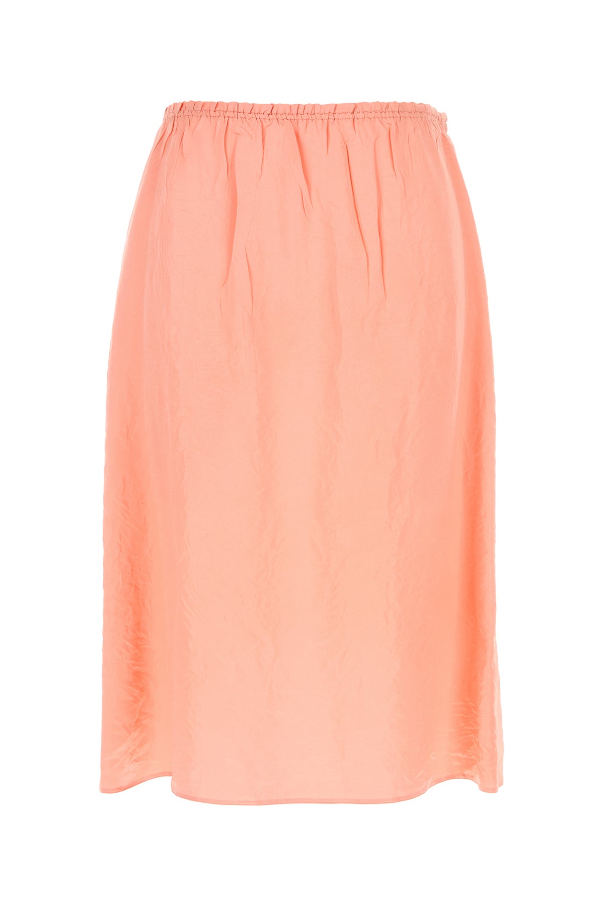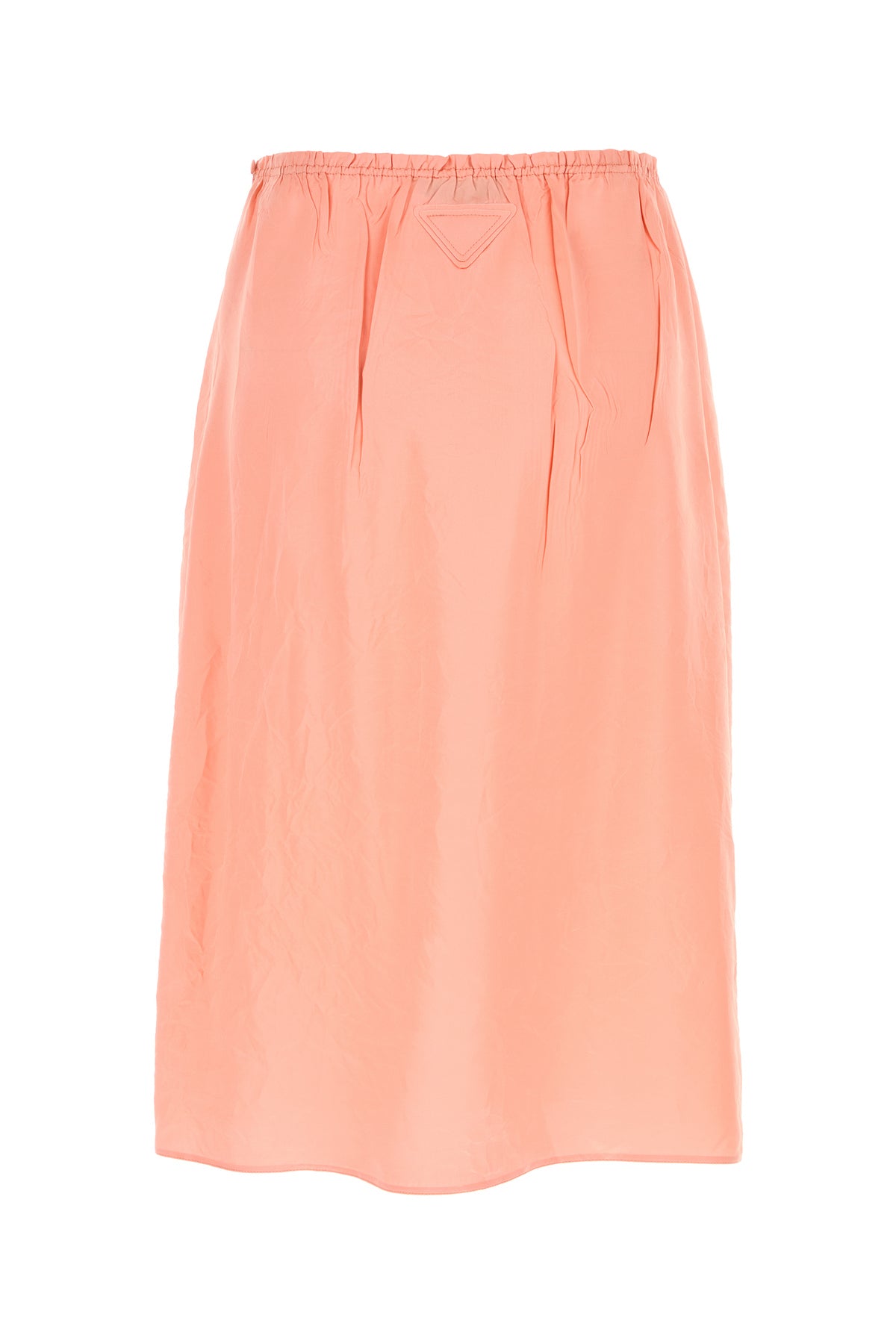 Gonna mdi realizzata in raso di viscosa e seta ad effetto stropicciato arricchita da iconico triangolo in tessuto tonale sul retro.