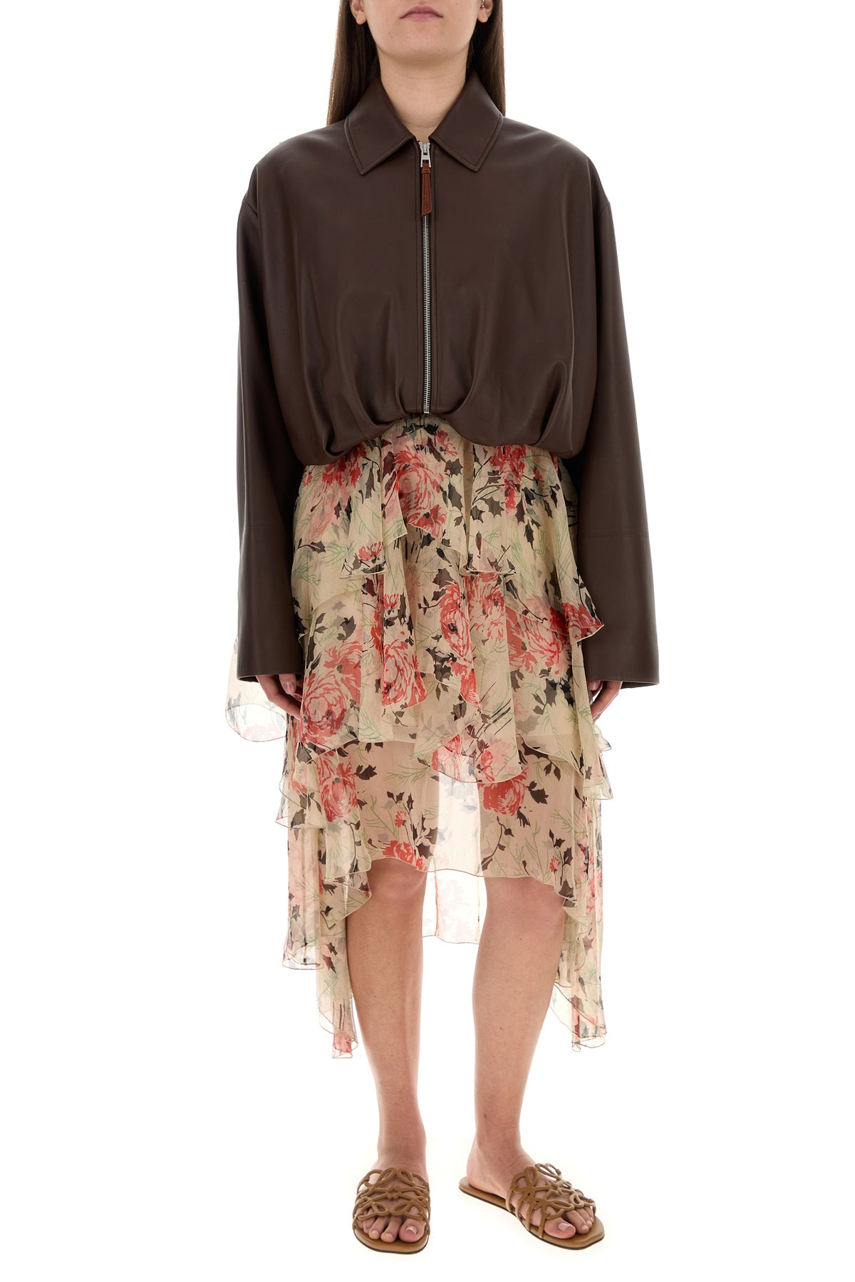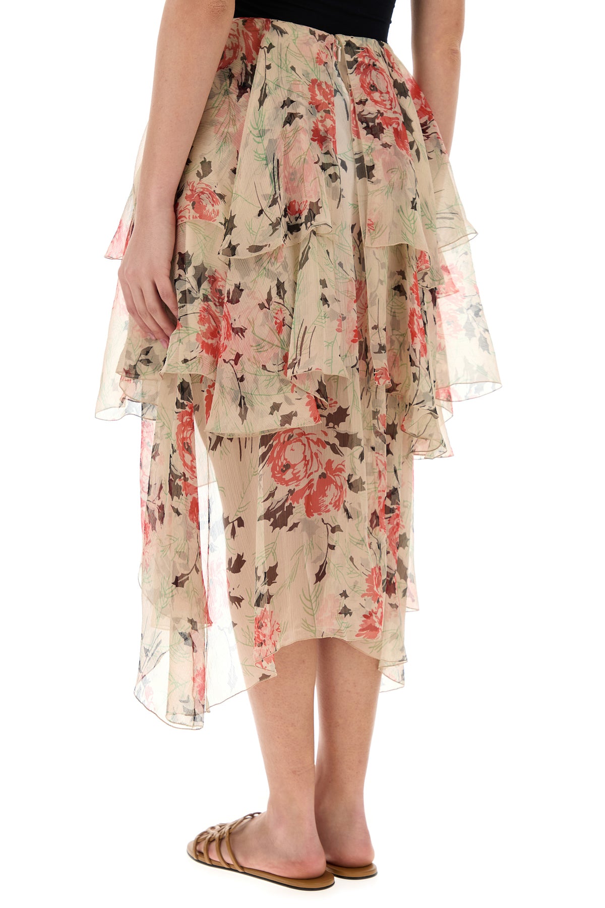 Gonna a balze realizzata in pura seta caratterizzata da stampa Peony su tutta la superficie.