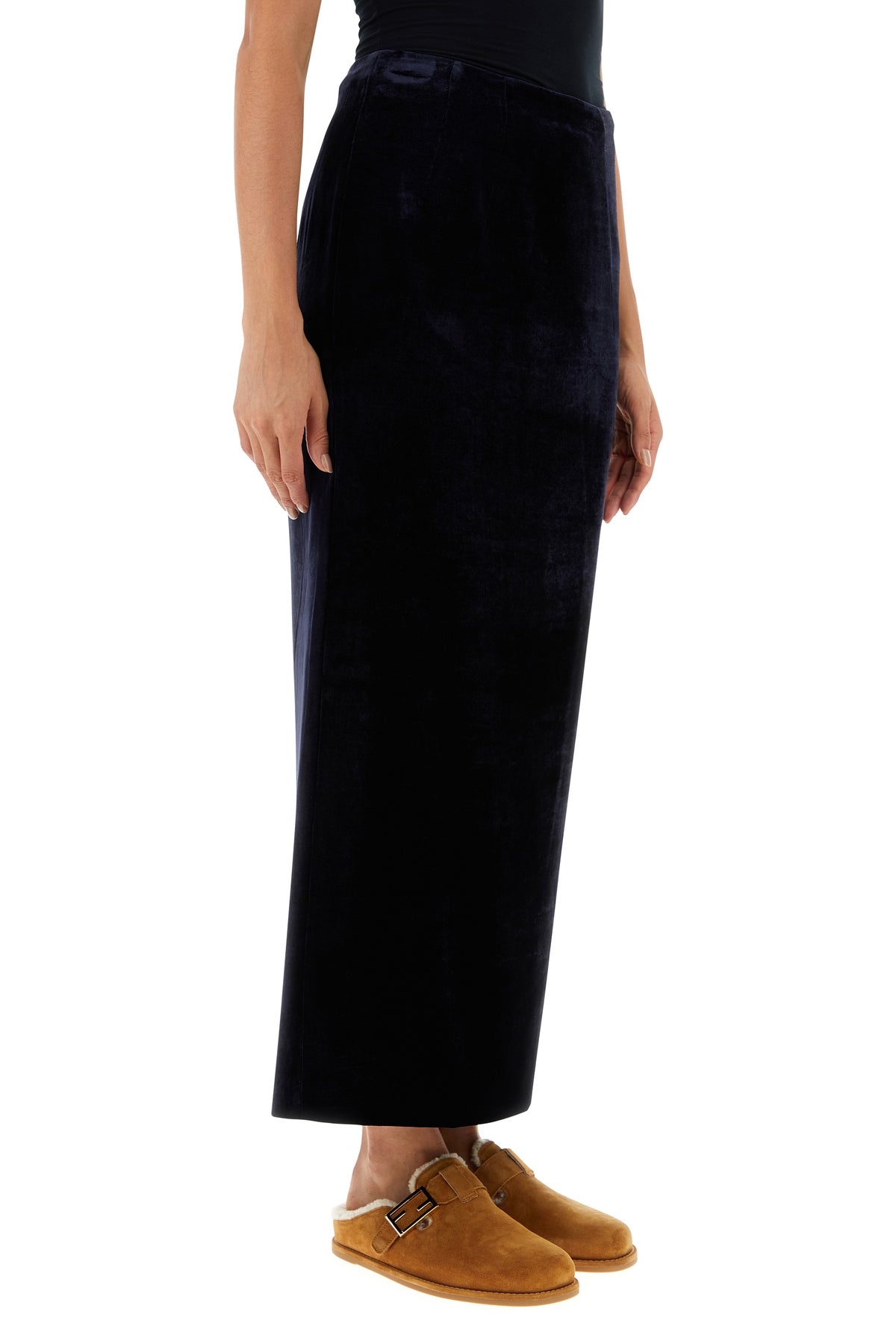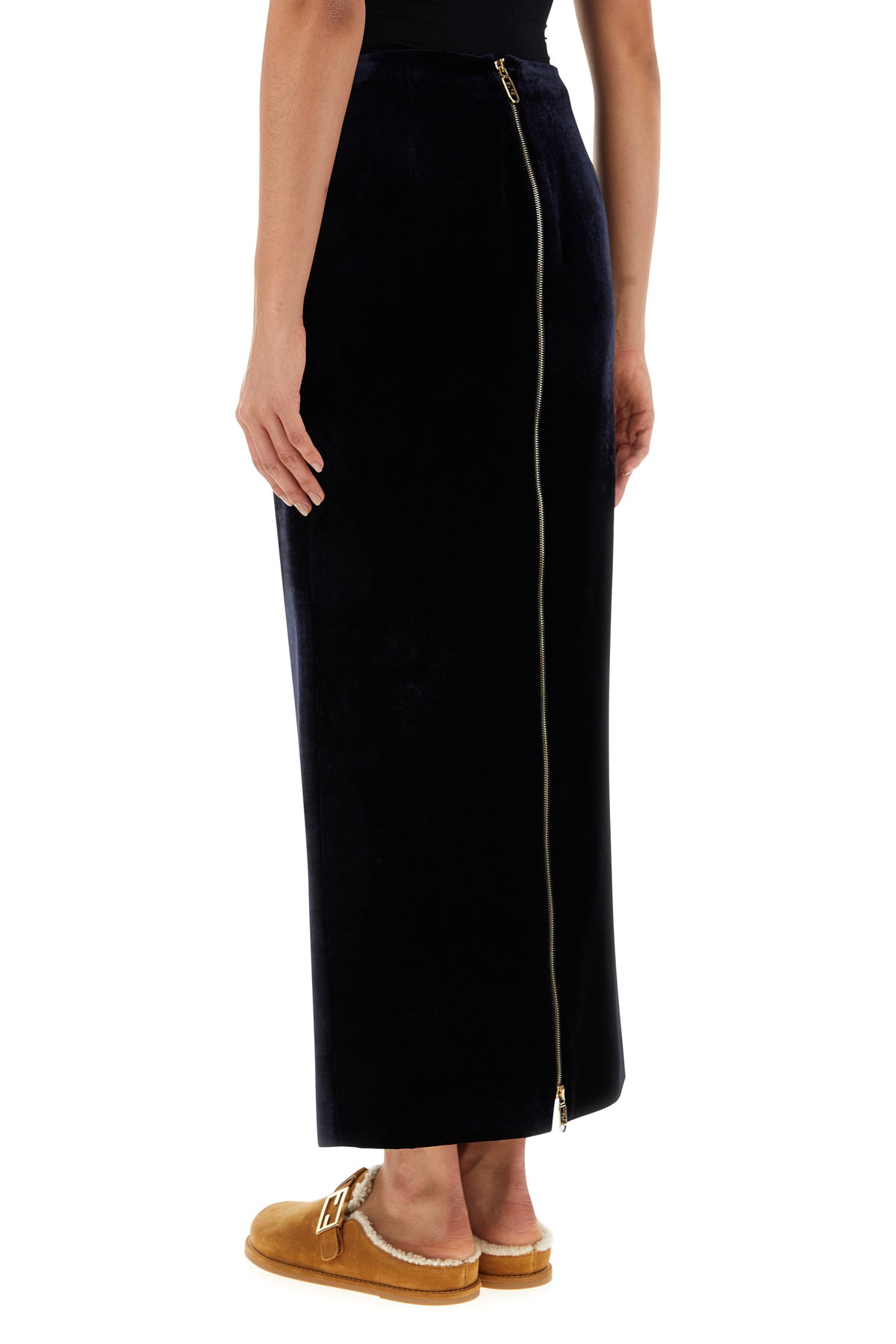 Gonna dal taglio lungo realizzata in velluto caratterizzata da chiusura mediante zip sul retro.