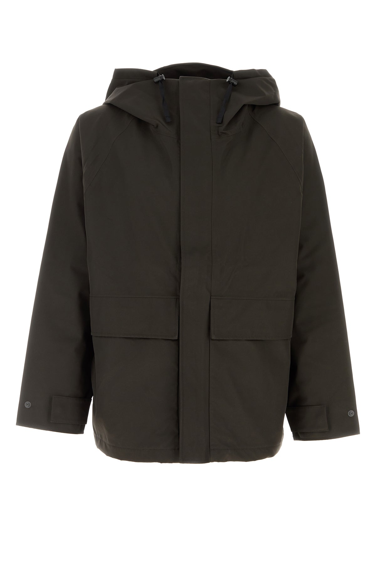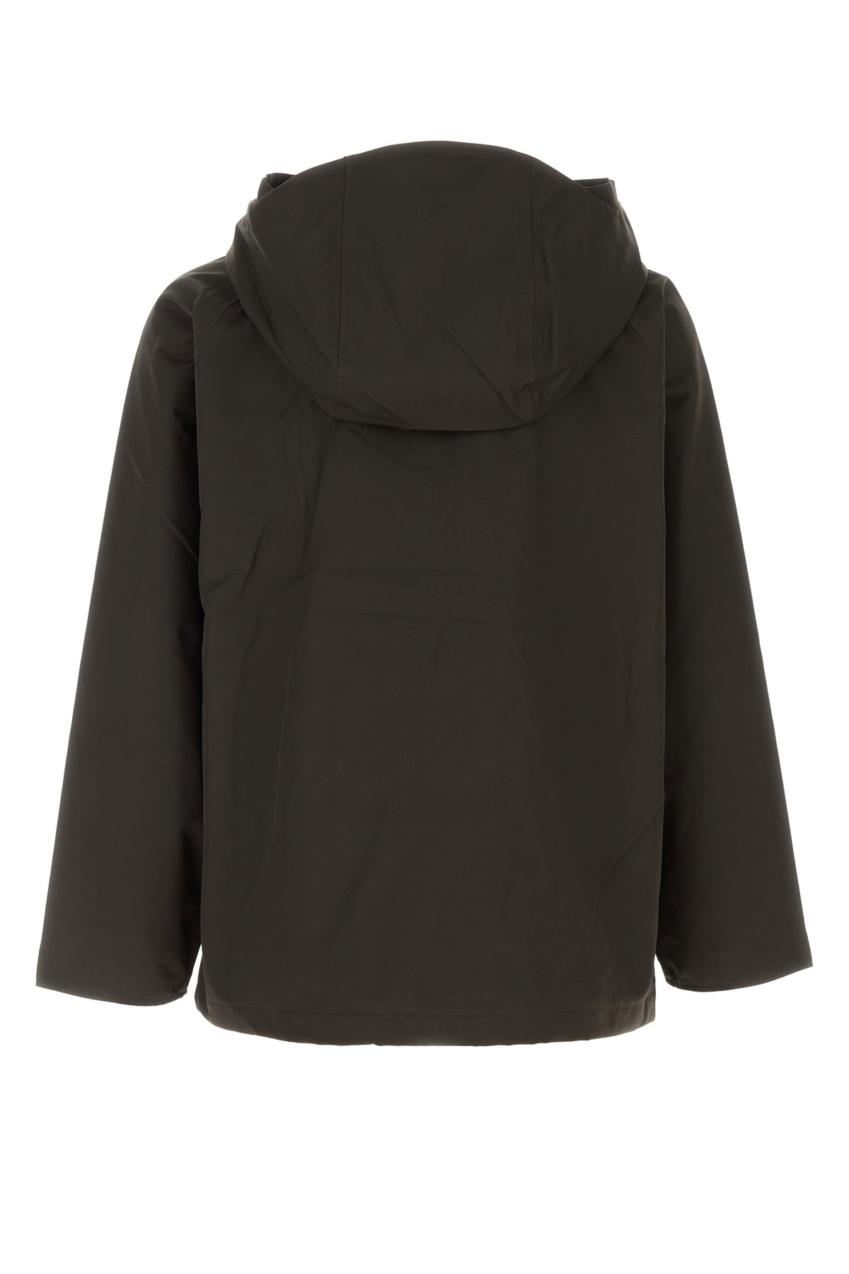 Impermeabile realizzato in poliestere caratterizzato da cappuccio con coulisse.