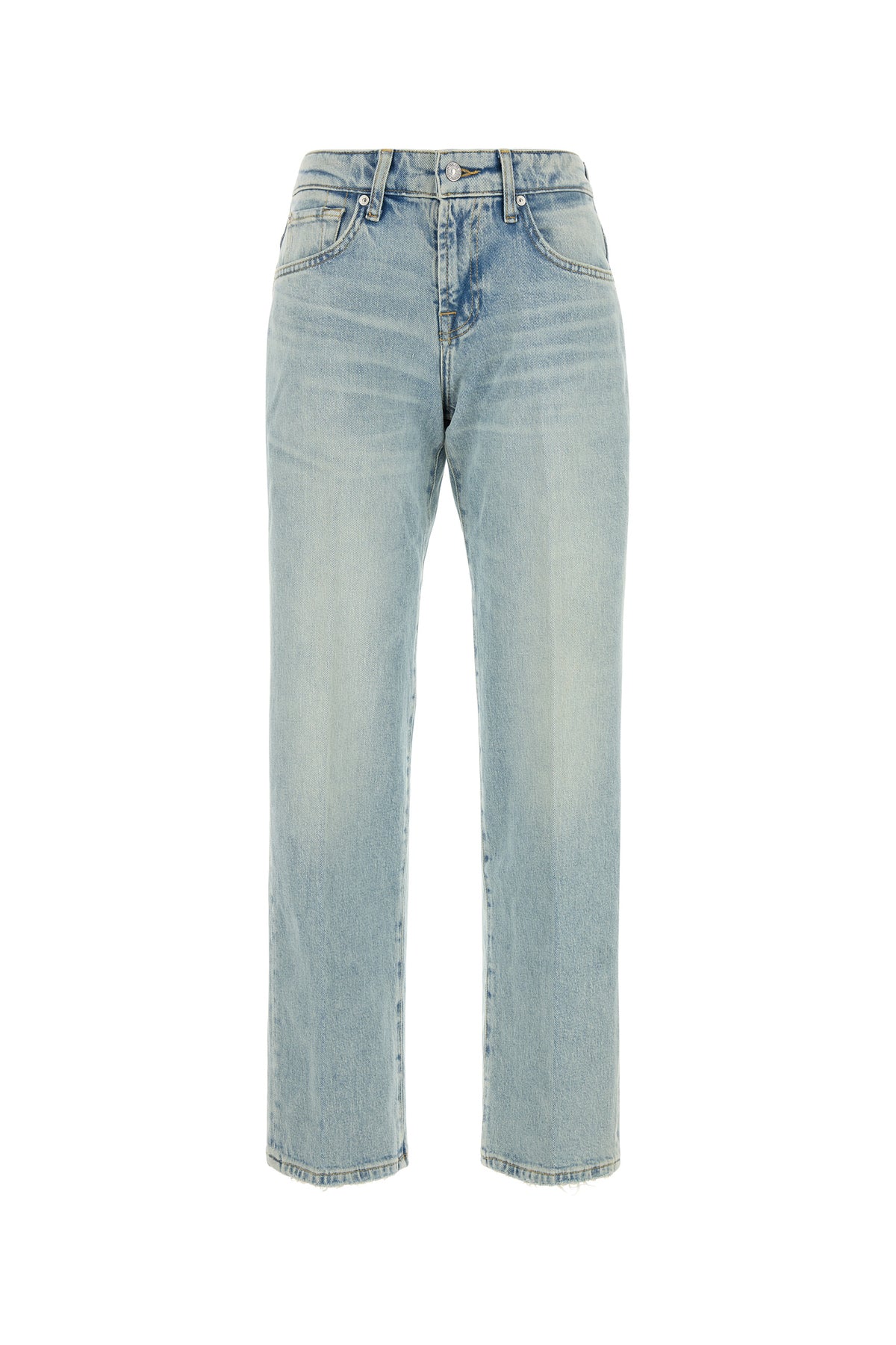 Jeans realizzati in denim di cotone stretch slavato arricchiti da etichetta logata in pelle sul retro.