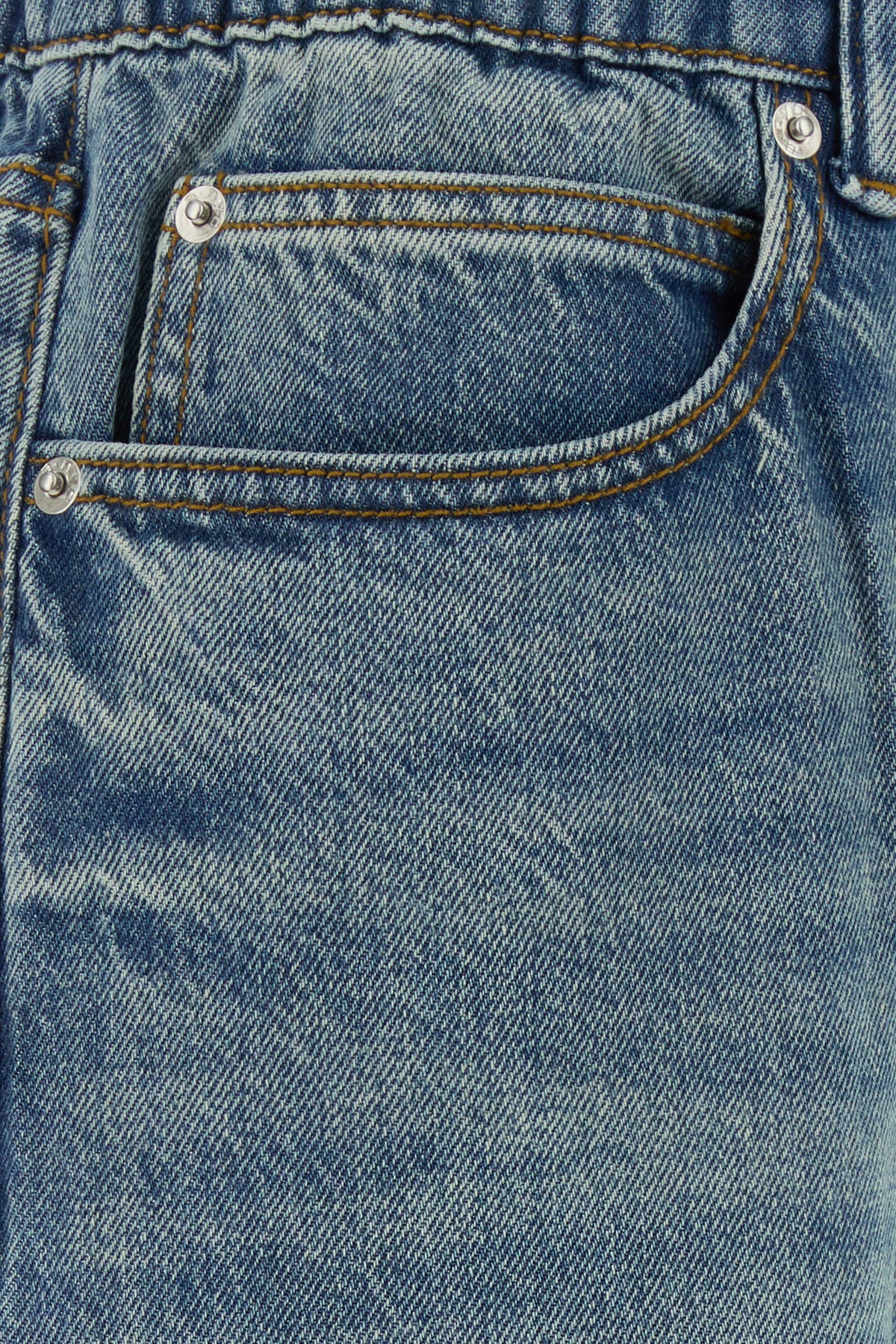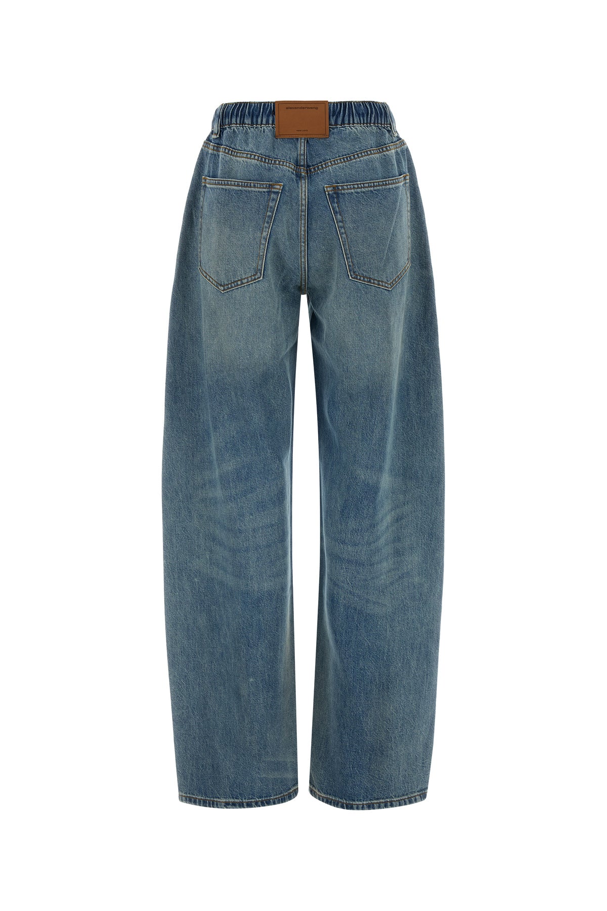 Jeans dalla gamba ampia realizzati in denim di puro cotone slavato arricchiti da etichetta logata sul retro.