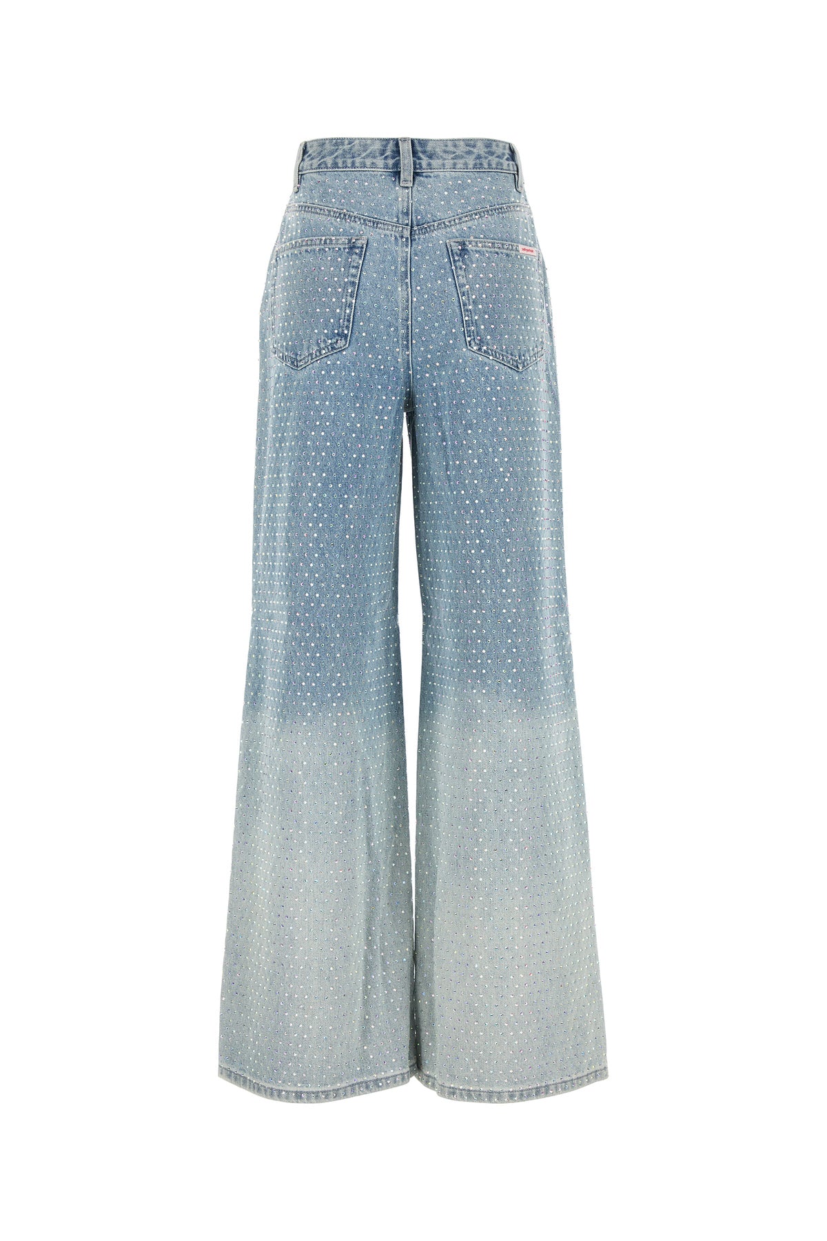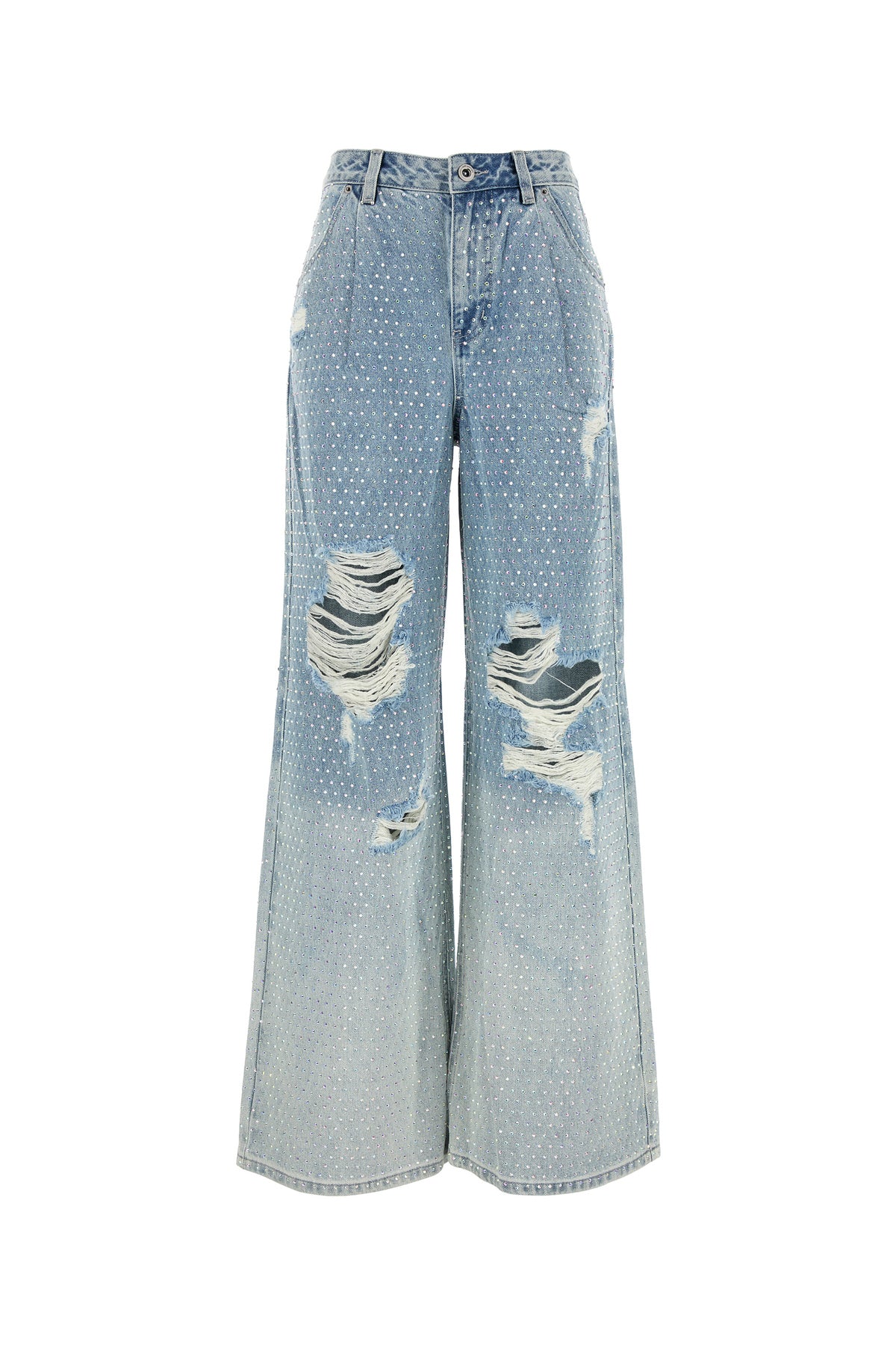 Jeans dalla gamba ampia realizzati in denim di puro cotone slavato caratterizzati da strappi intenzionali arricchiti da cristalli su tutta la superficie.