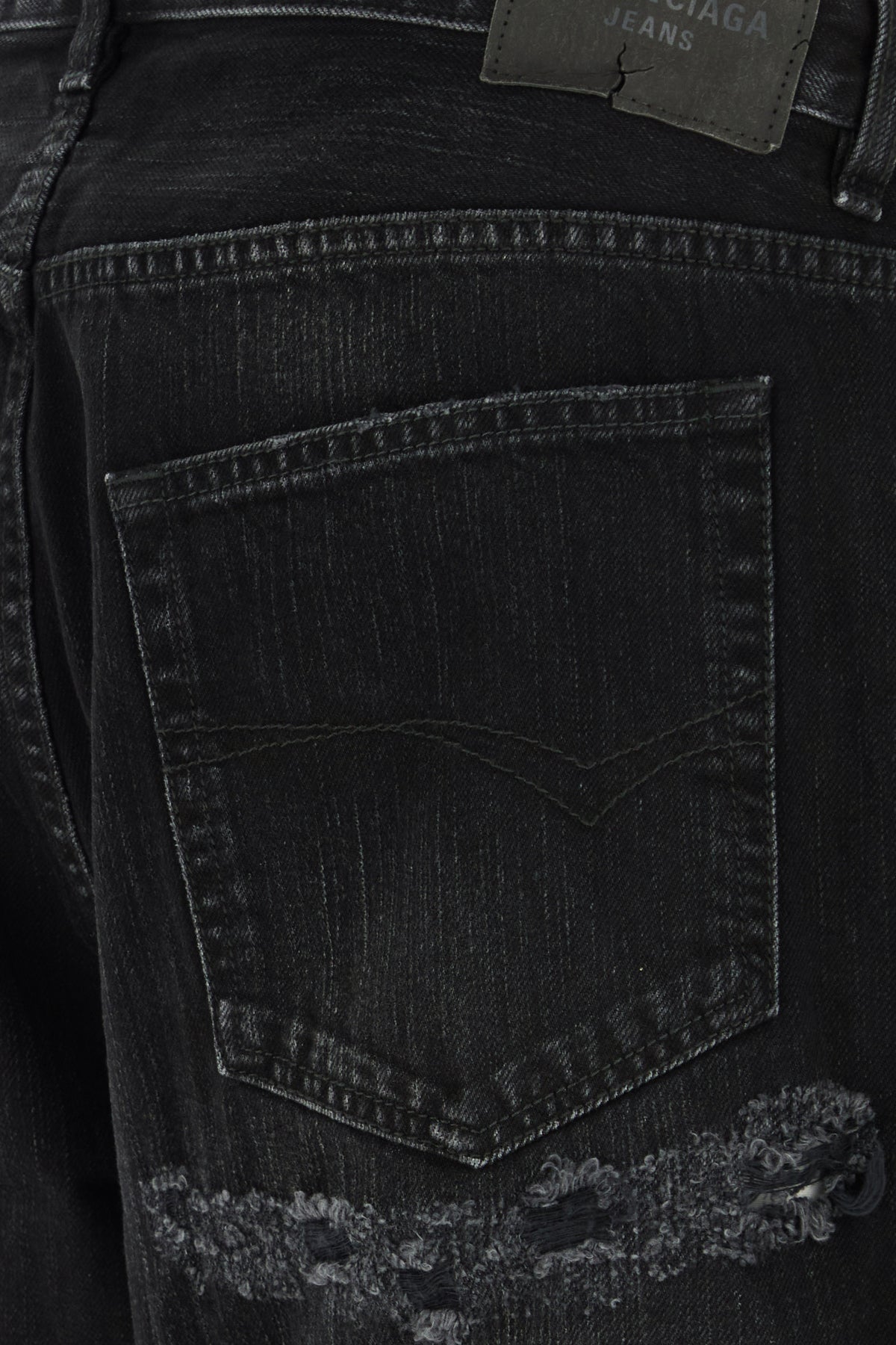 Jeans dalla gamba ampia realizzati in denim di puro cotone slavato e sdrucito con strappo intenzionale arricchiti da etichetta logata sul retro.