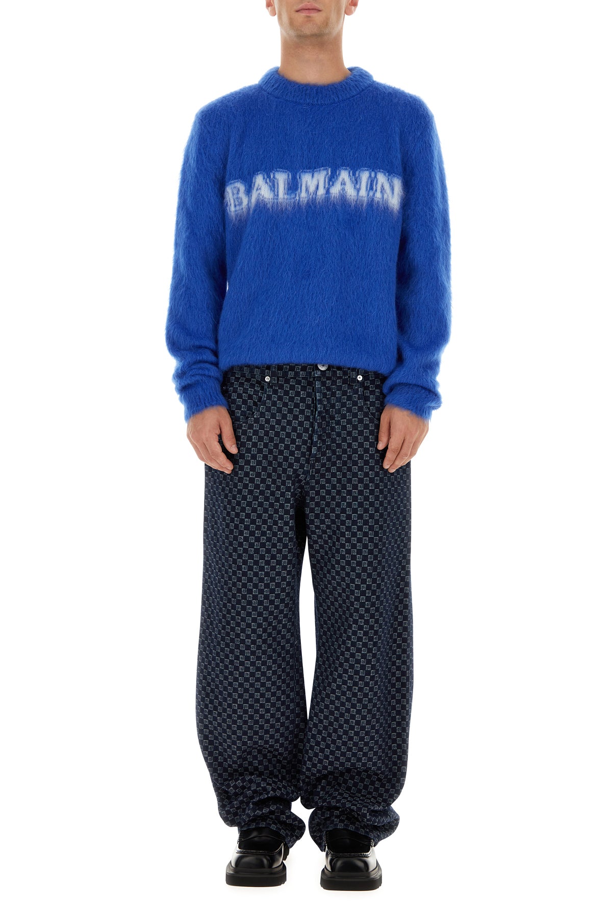 Jeans dalla gamba ampia realizzati in denim di puro cotone caratterizzati da ricamo Labyrinth su tutta la superficie arricchiti da etichetta logata sul retro.