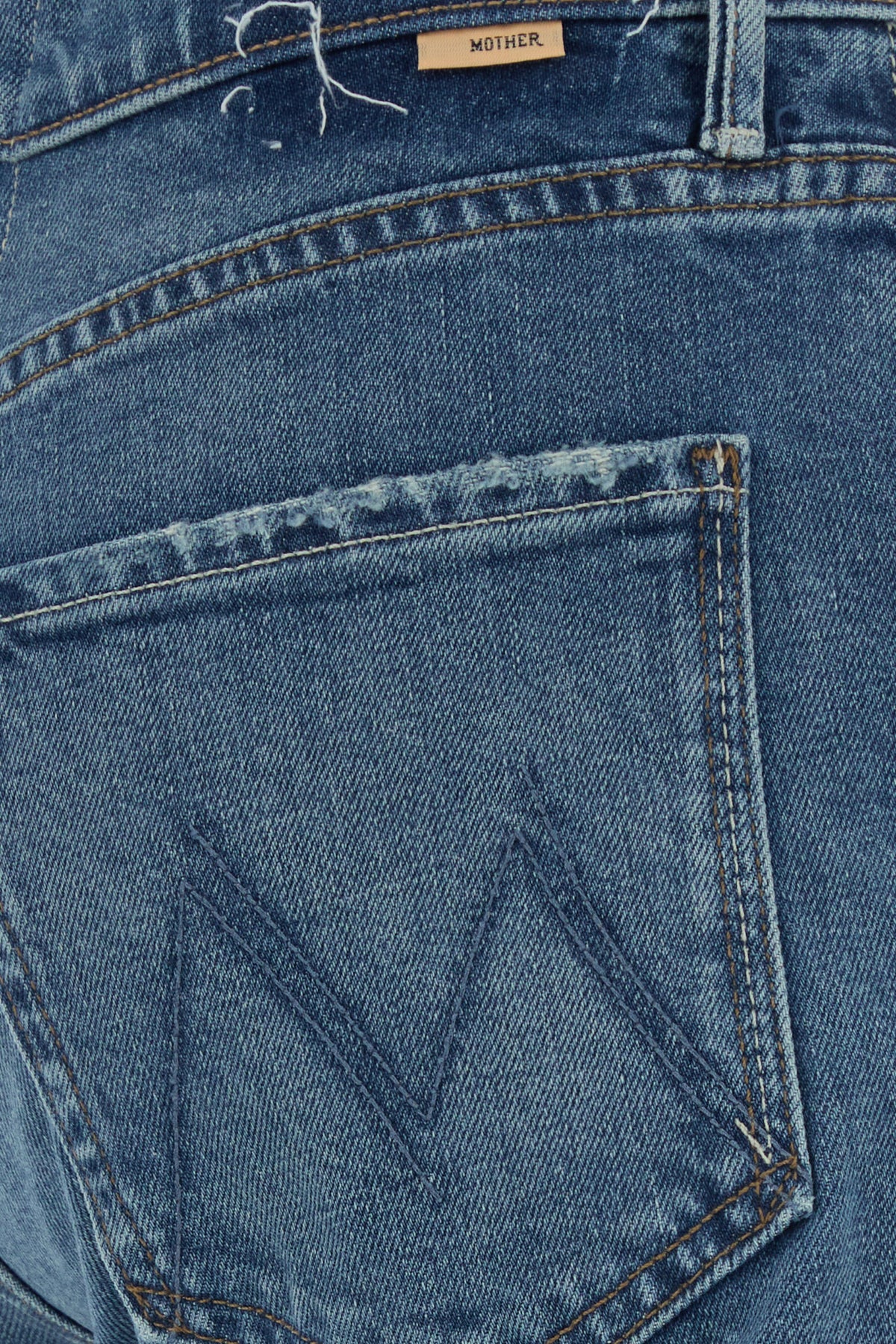 Jeans dalla gamba ampia realizzata in denim di cotone stretch slavato e leggermente sdrucito arricchito da etichetta logata sul retro.
