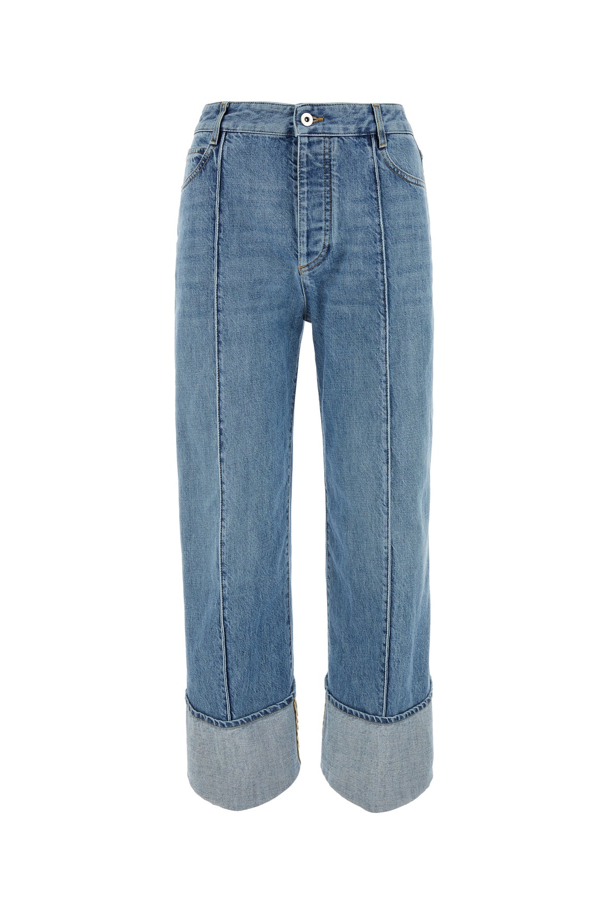 Jeans realizzati in denim di puro cotone caratterizzati da fondo risvoltato.