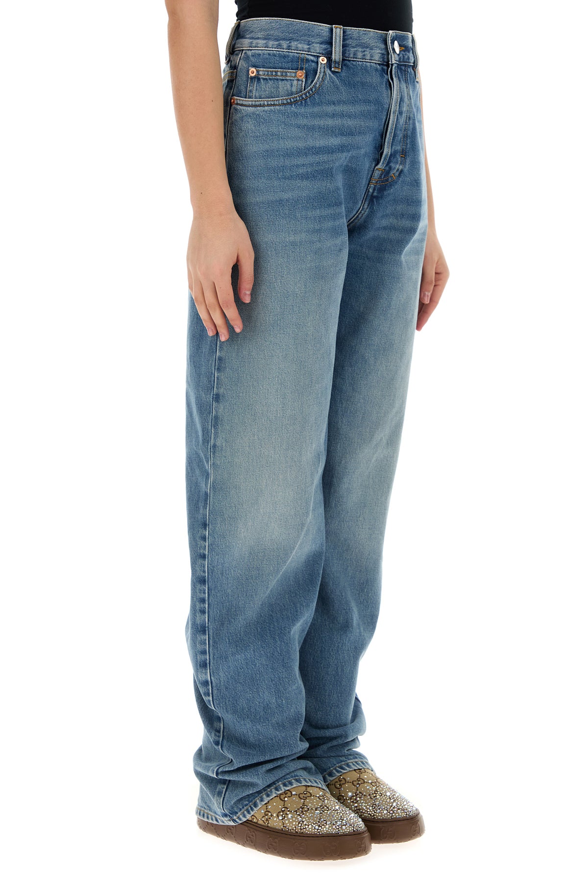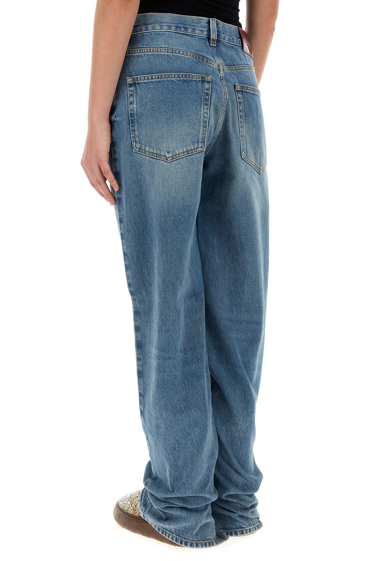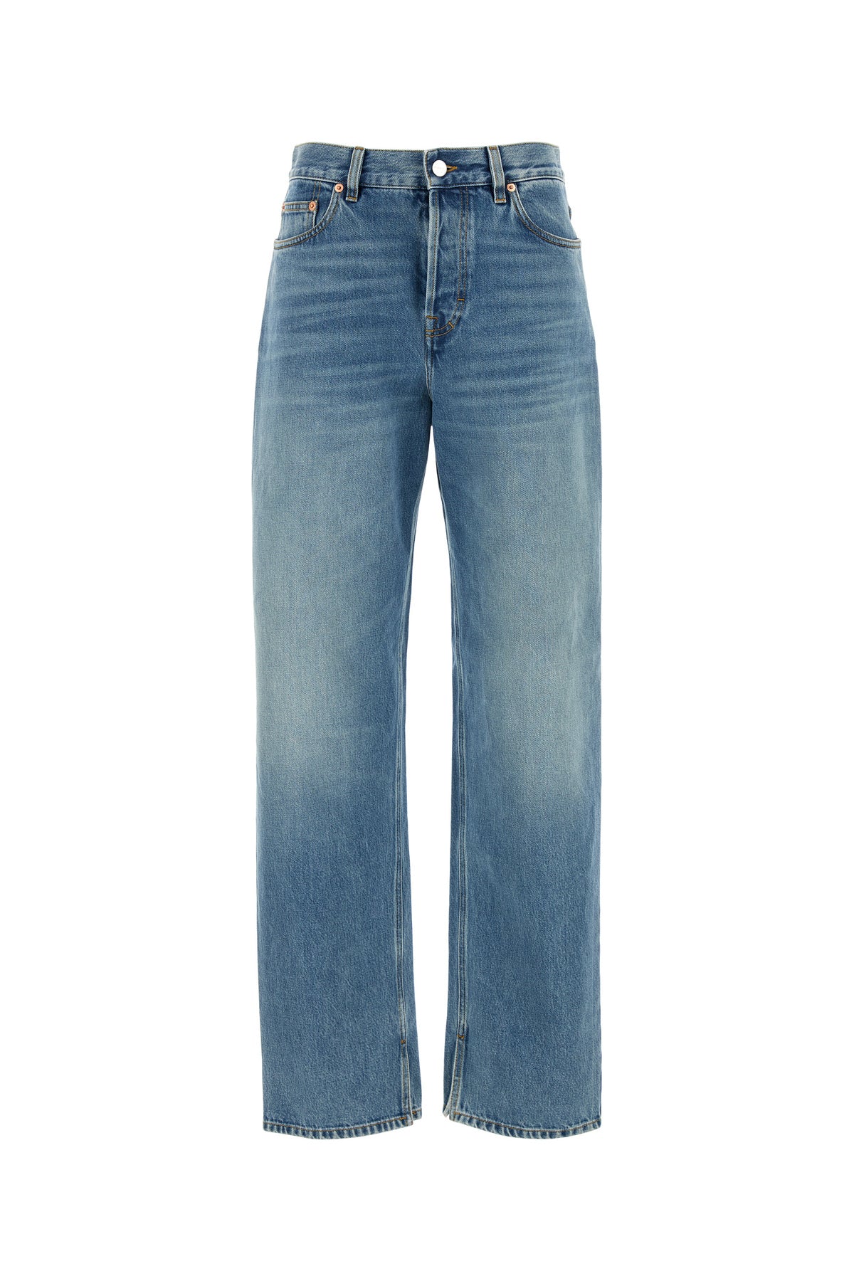 Jeans realizzati in denim di puro cotone leggermente slavato arricchiti da etichetta logata a contrasto sul retro.