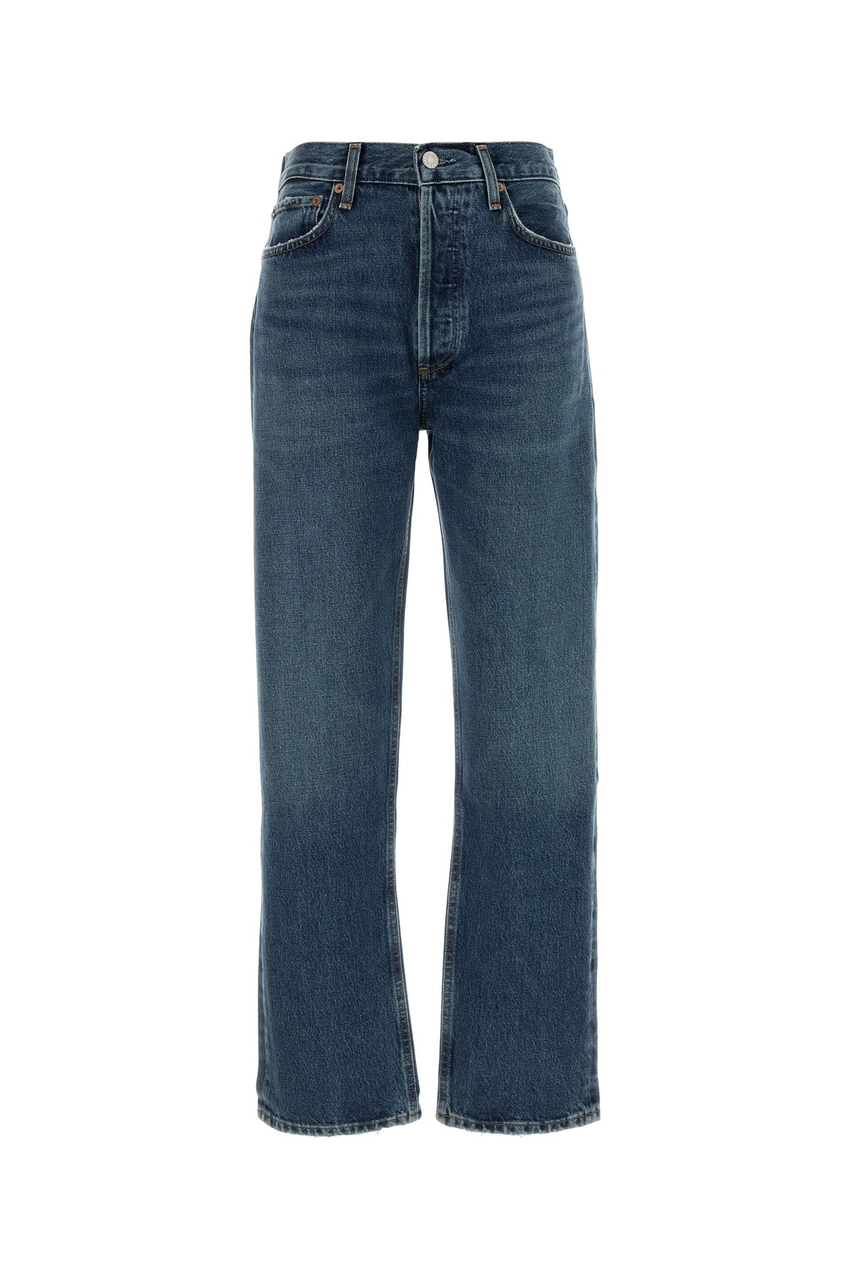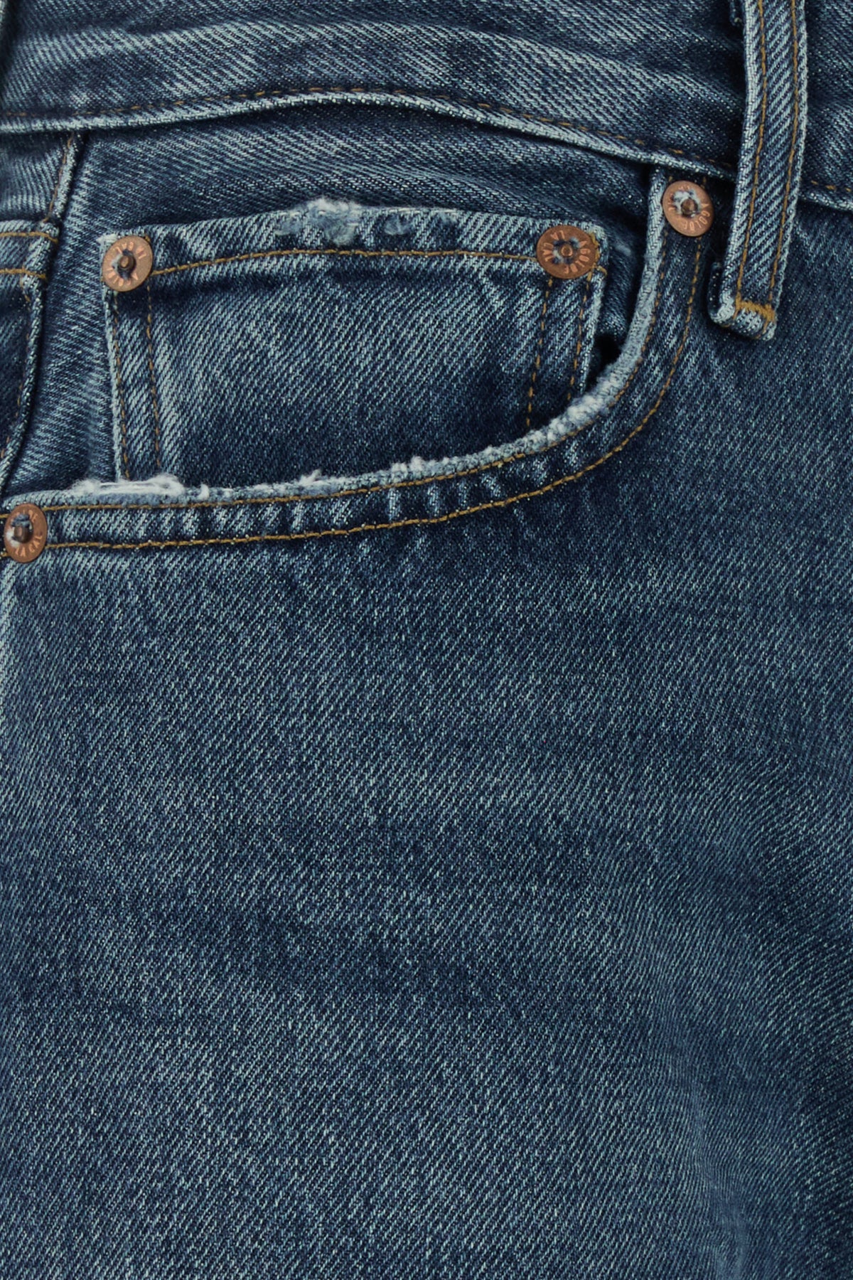 Jeans realizzati in denim di puro cotone slavato e leggermente sdrucito.