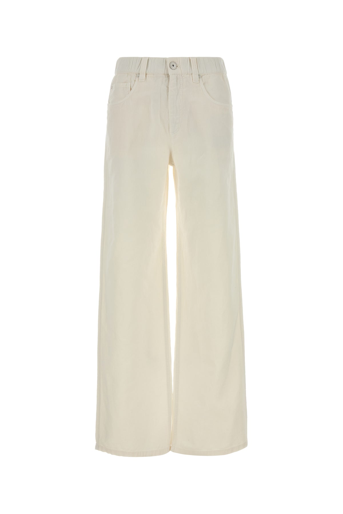 Jeans dalla gamba ampia realizzati in denim di cotone e lino.