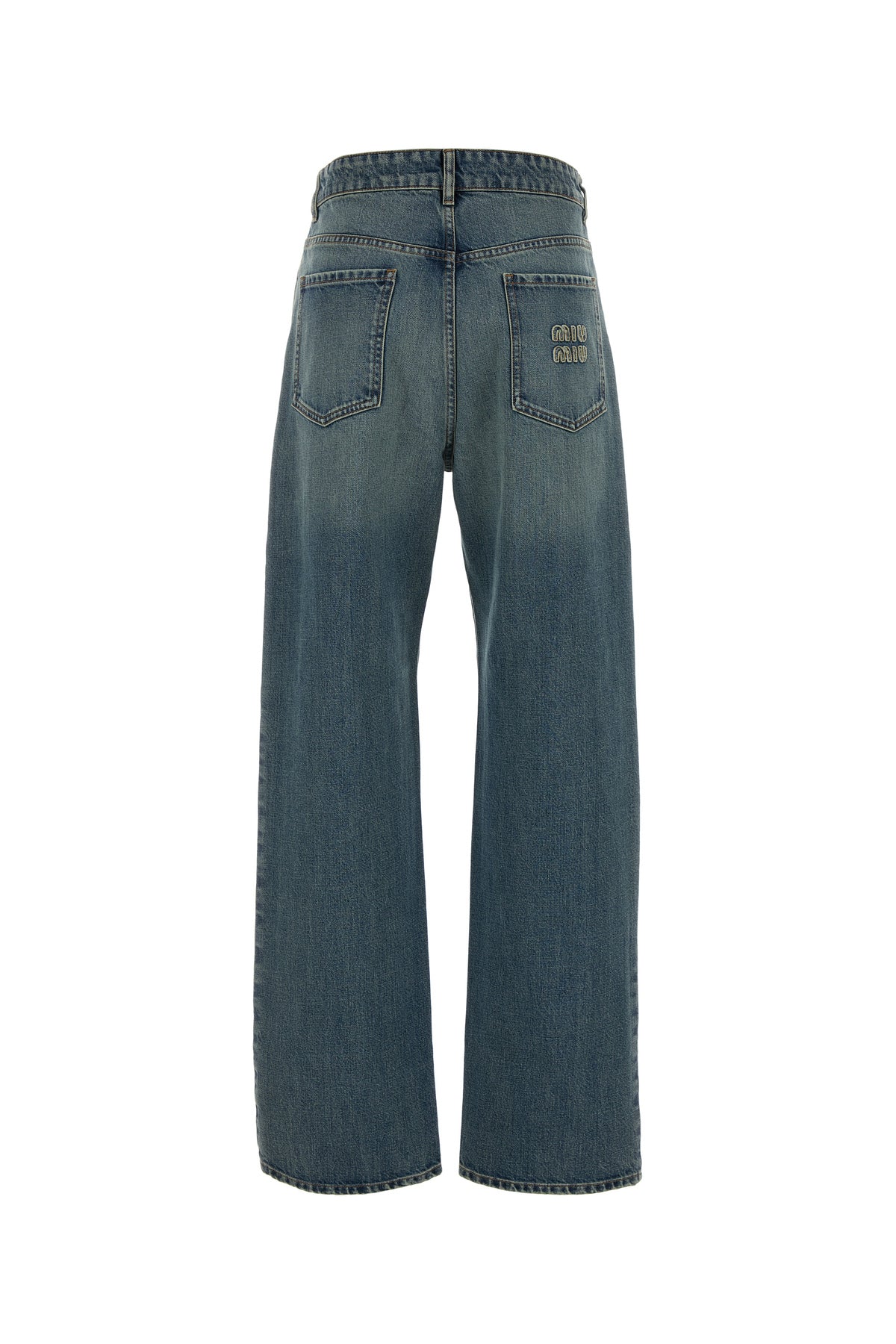 Jeans realizzati in denim di puro cotone slavato arricchiti da applicazione logata sul retro.