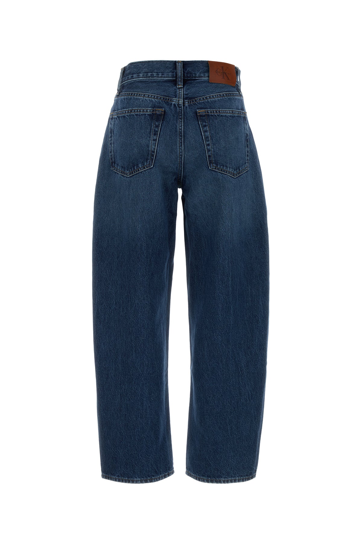 Jeans dalla gamba ampia realizzati in denim di puro cotone leggermente slavato arricchiti da etichetta logata sulla parte frontale e sul retro.