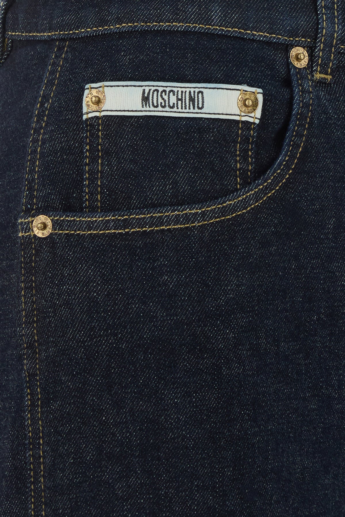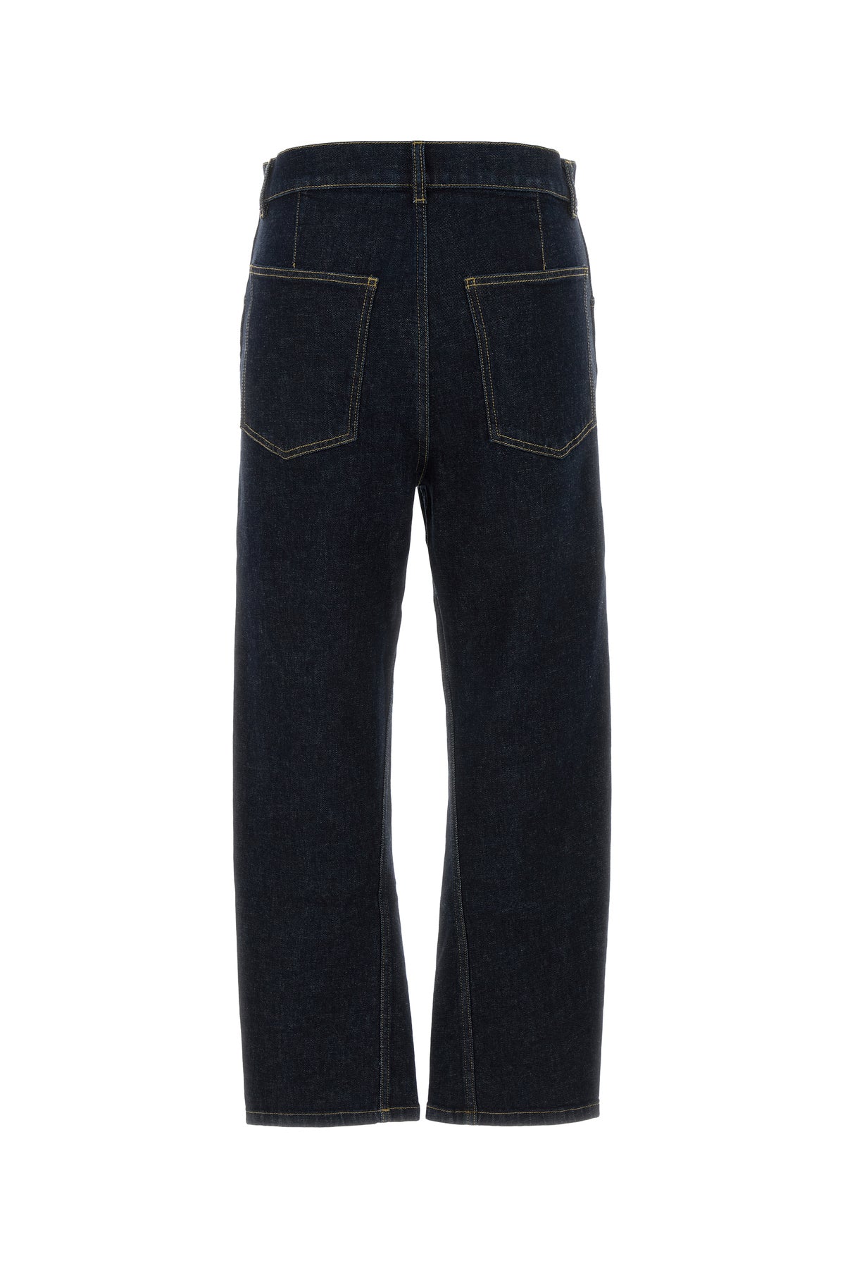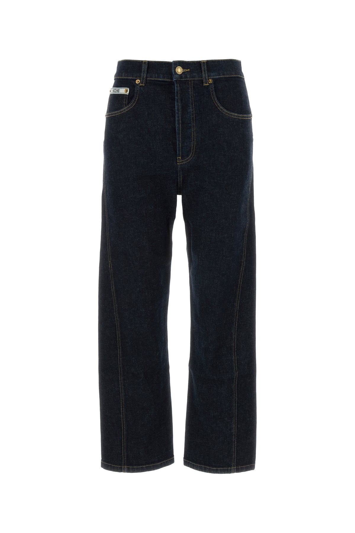 Jeans realizzati in denim di cotone stretch arricchiti da etichetta logata sulla parte frontale.