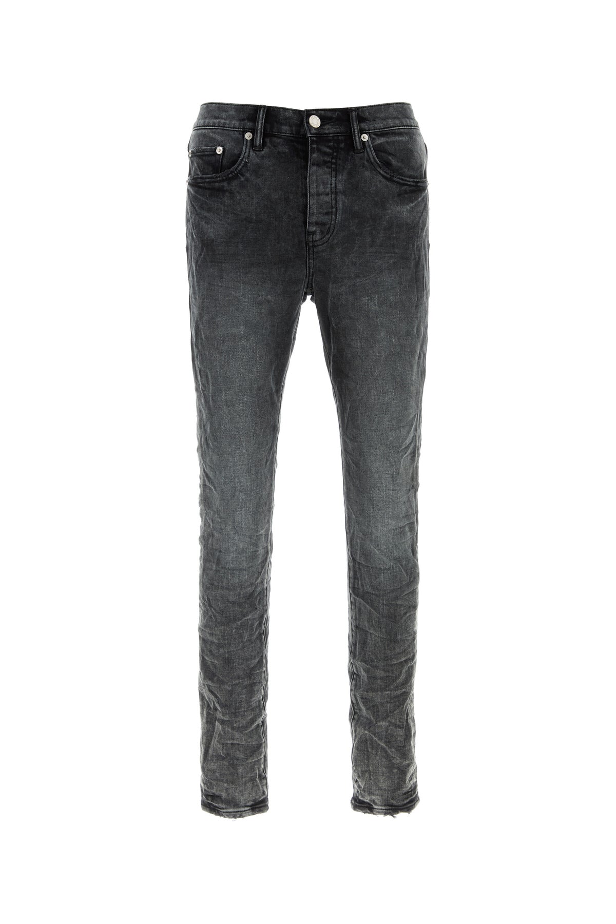 Jeans realizzati in denim di cotone stretch slavato leggermente sdrucito arricchiti da etichetta logata tonale sul retro.