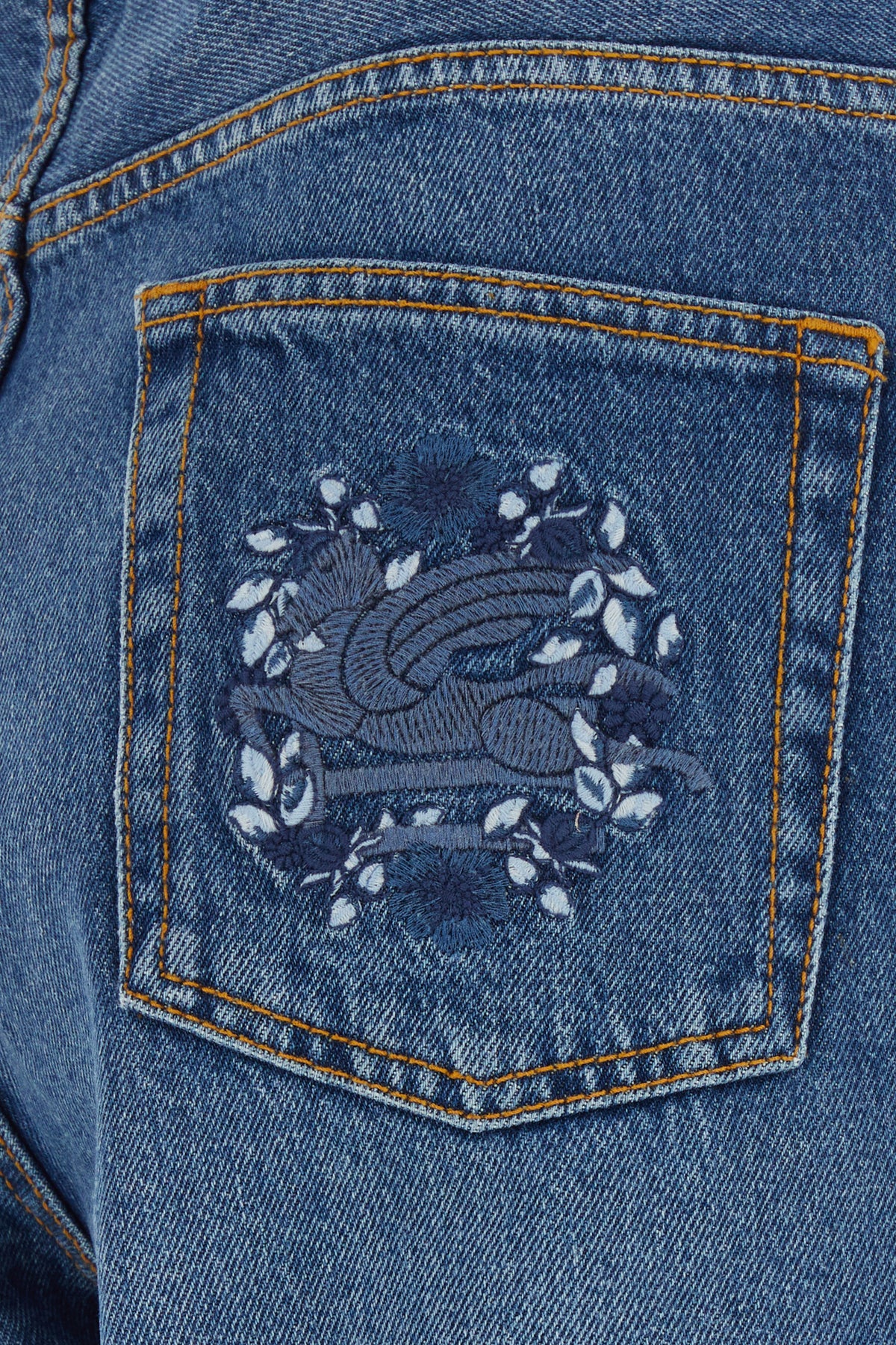 Jeans realizzati in denim di puro cotone caratterizzati da ricamo Etro Pegaso sul retro arricchiti da etichetta logata a contrasto sul retro.